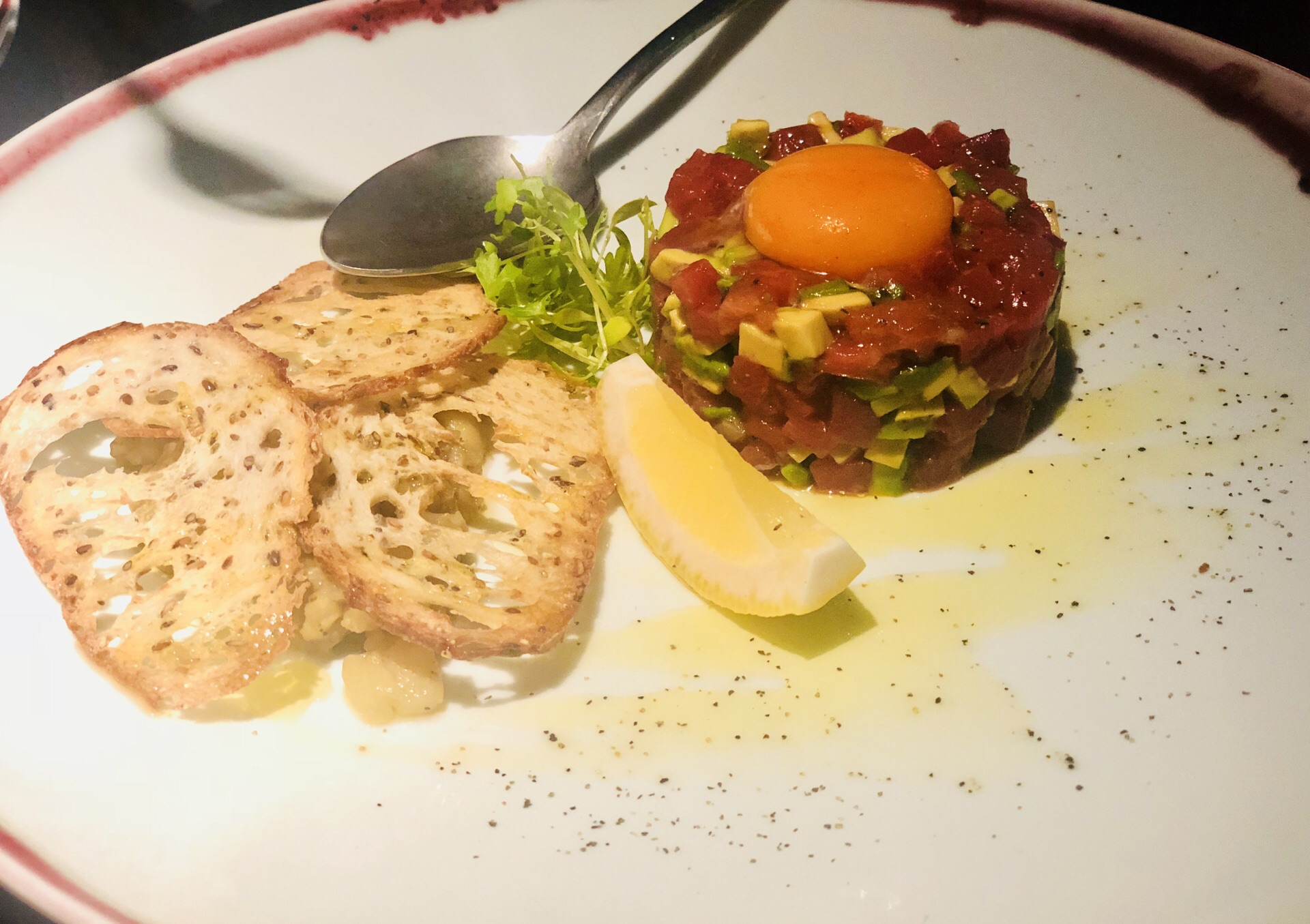 本来想来挑战战斧,量实在是大~ 换成858米的澳洲和牛m5+花纹肉眼牛排500g~ 金枪鱼塔塔...