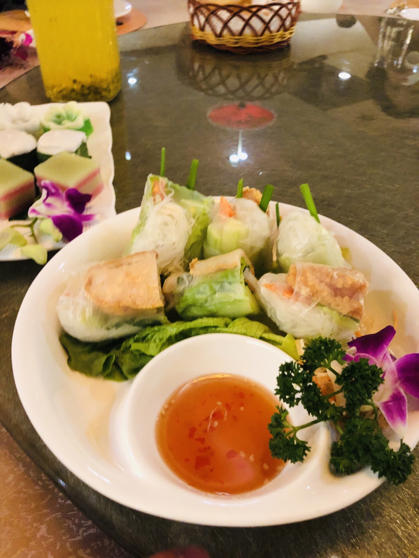 好久没来的泰国餐厅,母亲节定在这里吃饭,给各位妈妈都送上一朵康乃馨,还是挺有心的~服务也很周到,很有礼貌,非常不错的服务态度。味道也还不错,虾饼挺好吃的,水果卷的味道也很可口,定的团购还可以,另外再加了不少东西,价格不低,但服务真的不错。