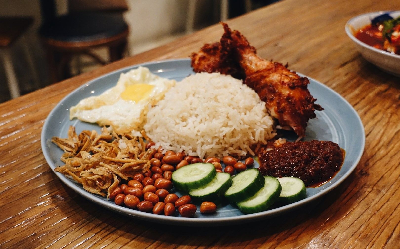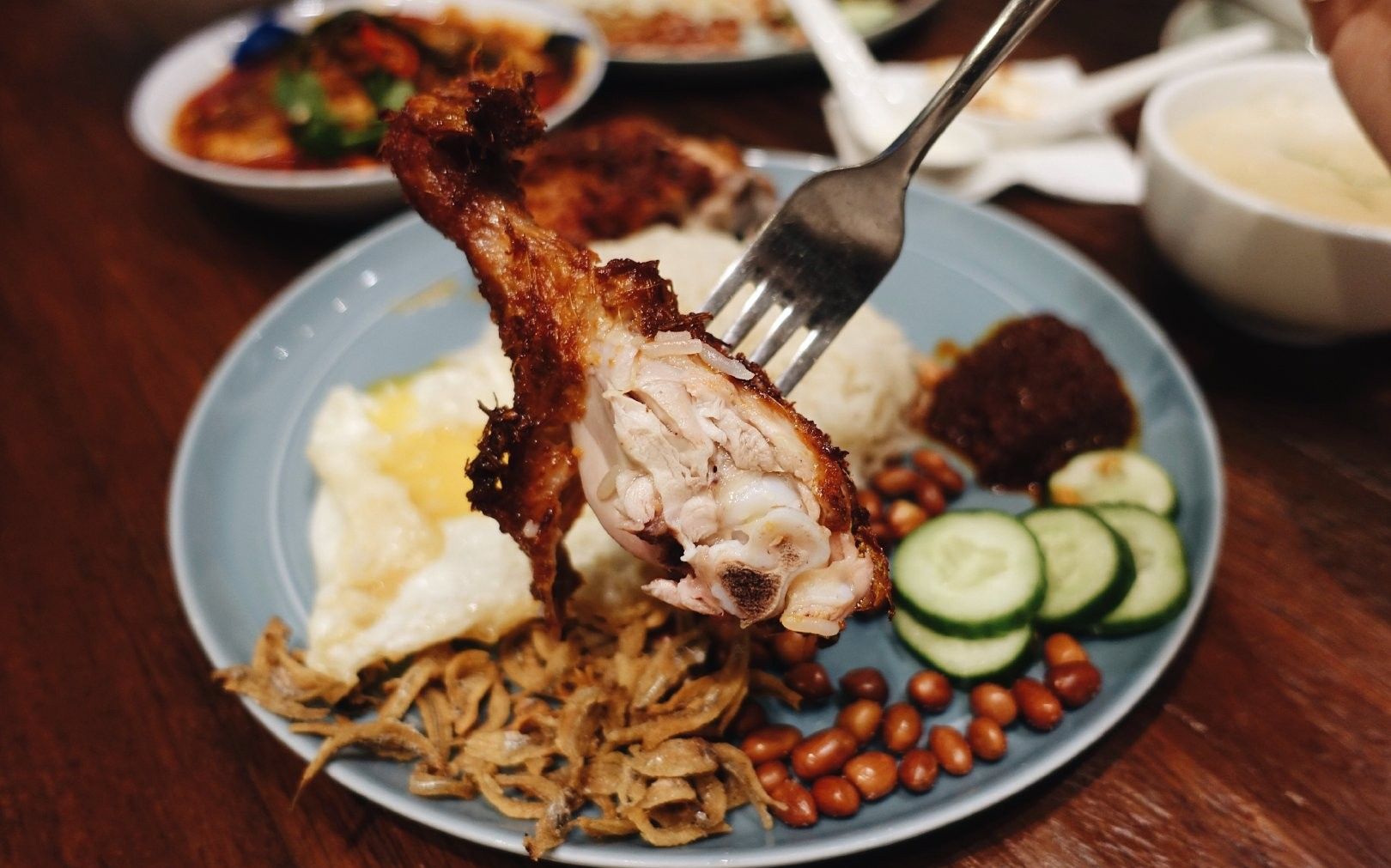 ▪️ɴᴀsɪ ʟᴇᴍᴀᴋ-ᴀʏᴀᴍ ɢᴏʀᴇɴɢ ʙᴇʀᴇᴍᴘᴀʜ ▫️ᴄᴏᴄᴏɴᴜᴛ ʀɪᴄᴇ, ᴄʜɪᴄᴋᴇɴ ʟᴇɢ, ɪᴋᴀɴ ʙɪʟɪs, ᴘᴇᴀɴᴜᴛs, ᴄᴜᴄᴜᴍʙᴇʀ, ғʀɪᴇᴅ ᴇɢɢ ᴀɴᴅ sᴀᴍʙᴀʟ 灵魂般重要的椰浆 是新加坡唯一采用SOC-single origin coconut标准的。自家压榨 香气清新扑鼻 超级好闻!! 用的是泰国香米 口感很蓬松 好多椰浆饭都会油 但他家完全不油不厚重……分分钟把米饭扫光 另一个灵魂配角就是叁岜酱。 甜度和辣度都正好 欲罢不能!给了好多酱还是不够吃 ▪️ᴀssᴀᴍ ᴘᴇᴅᴀs-ʀᴇᴅ sɴᴀᴘᴘᴇʀ 都卖完了就只剩下最贵的红鲷了 鲷鱼肉质特别鲜嫩 灵魂辣酱再度俘获人心 不过这个会偏辣一点 但依然好吃到不行