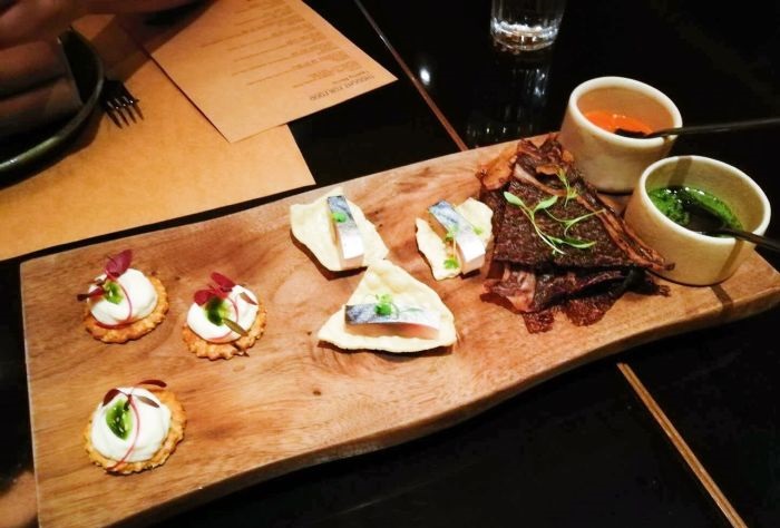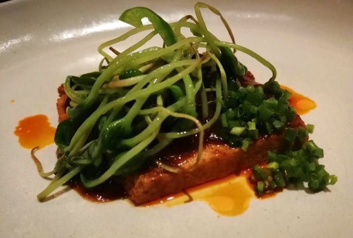 这次的重点当然还是美食,这里倡导的是健康且味美的饮食。每份餐品都十分精致,个人最喜欢的前菜要数风干牛肉,香气入鼻却不油腻,搭配罗勒酱简直完美,看起来像虾片的脆片其实是鱿鱼特制,很有嚼劲。主菜罗宾斯岛和牛牛肉是经过一个小时的60度低温慢煮的,既保持了口感又保留了营养,带血却不觉得腥。芳香四溢获是芒果冰沙配的椰子奶,芳香来自最里层的炸过的糯米,可谓别出心裁。