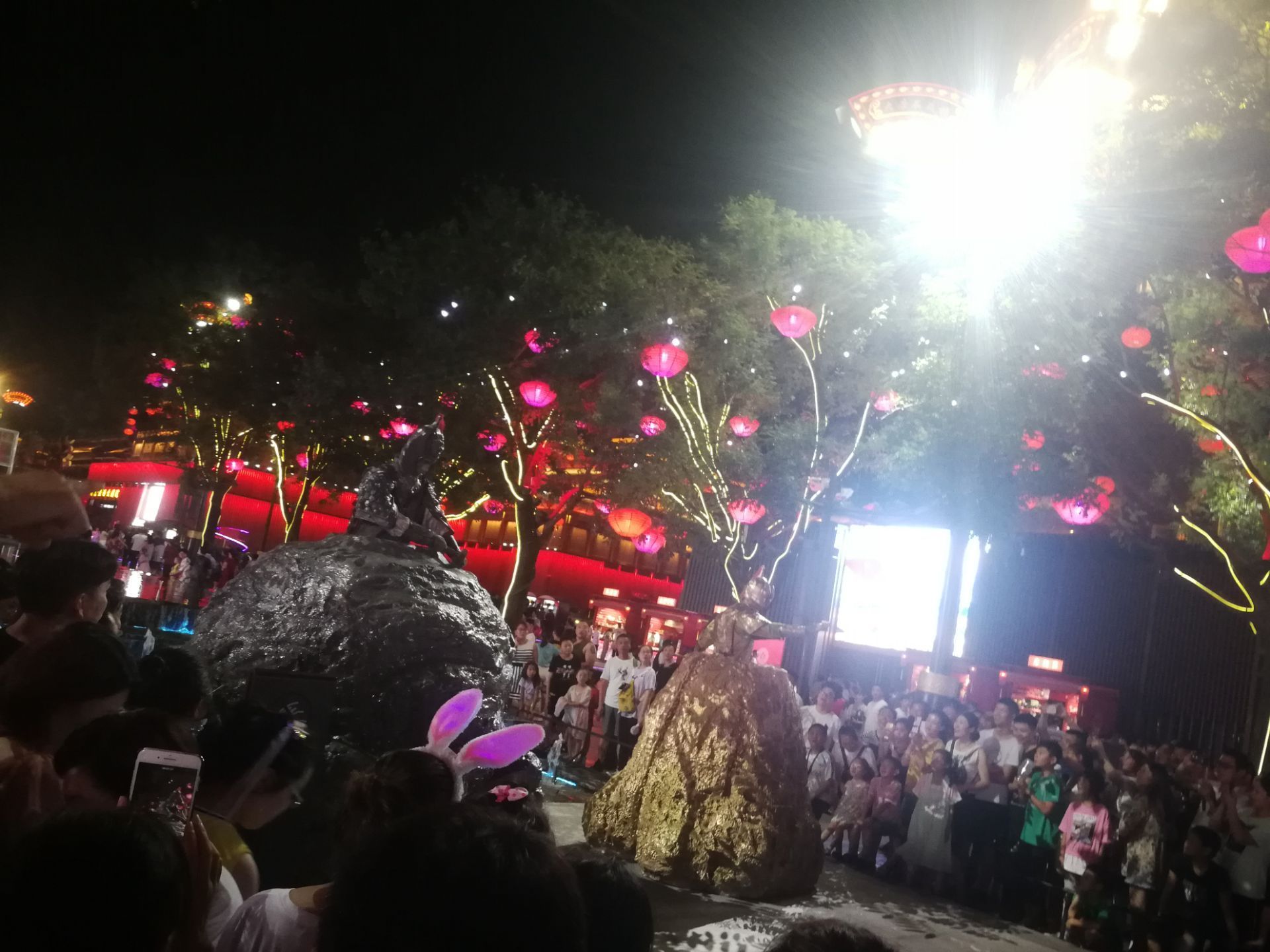 ...晚上人挺多的,而且很热闹,也看得到晚上亮灯的大雁塔,挺好的,一条街还挺长的,还可以啦,好好玩玩来西安旅游,去了大唐不夜城,到了晚上人挺多的,而且很热闹,也看得到晚上亮灯的大雁塔,挺好的,一条街还挺长的,还可以啦,好好玩玩