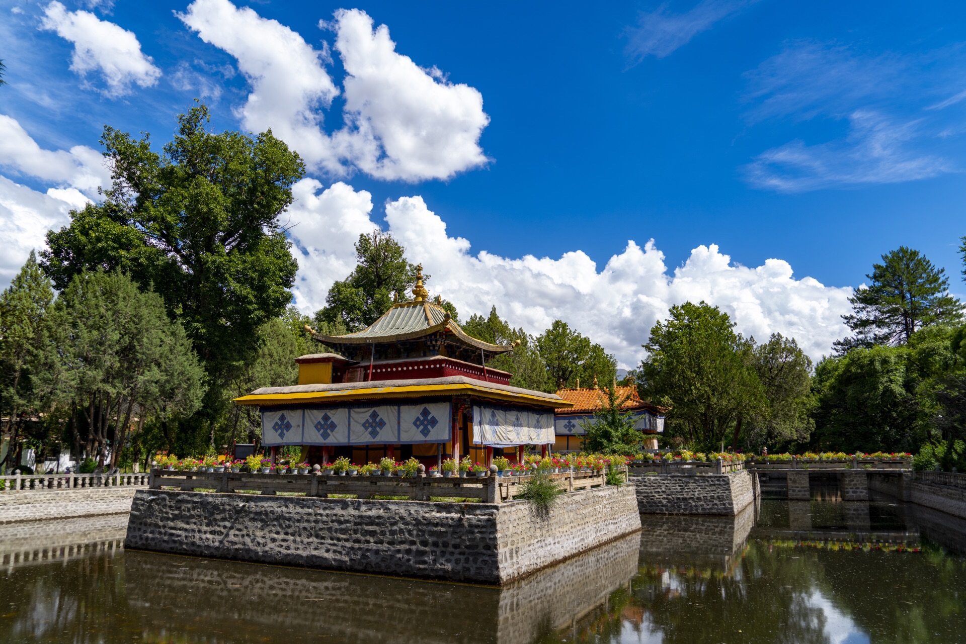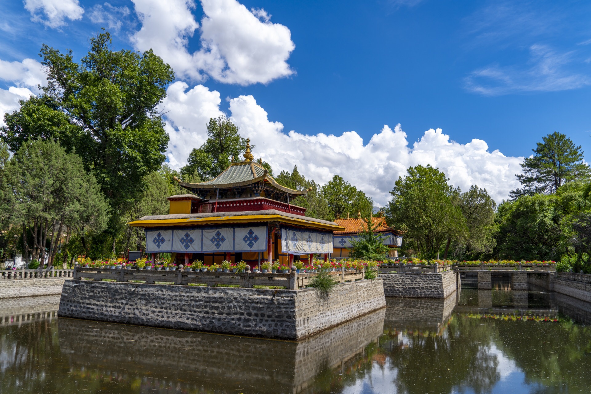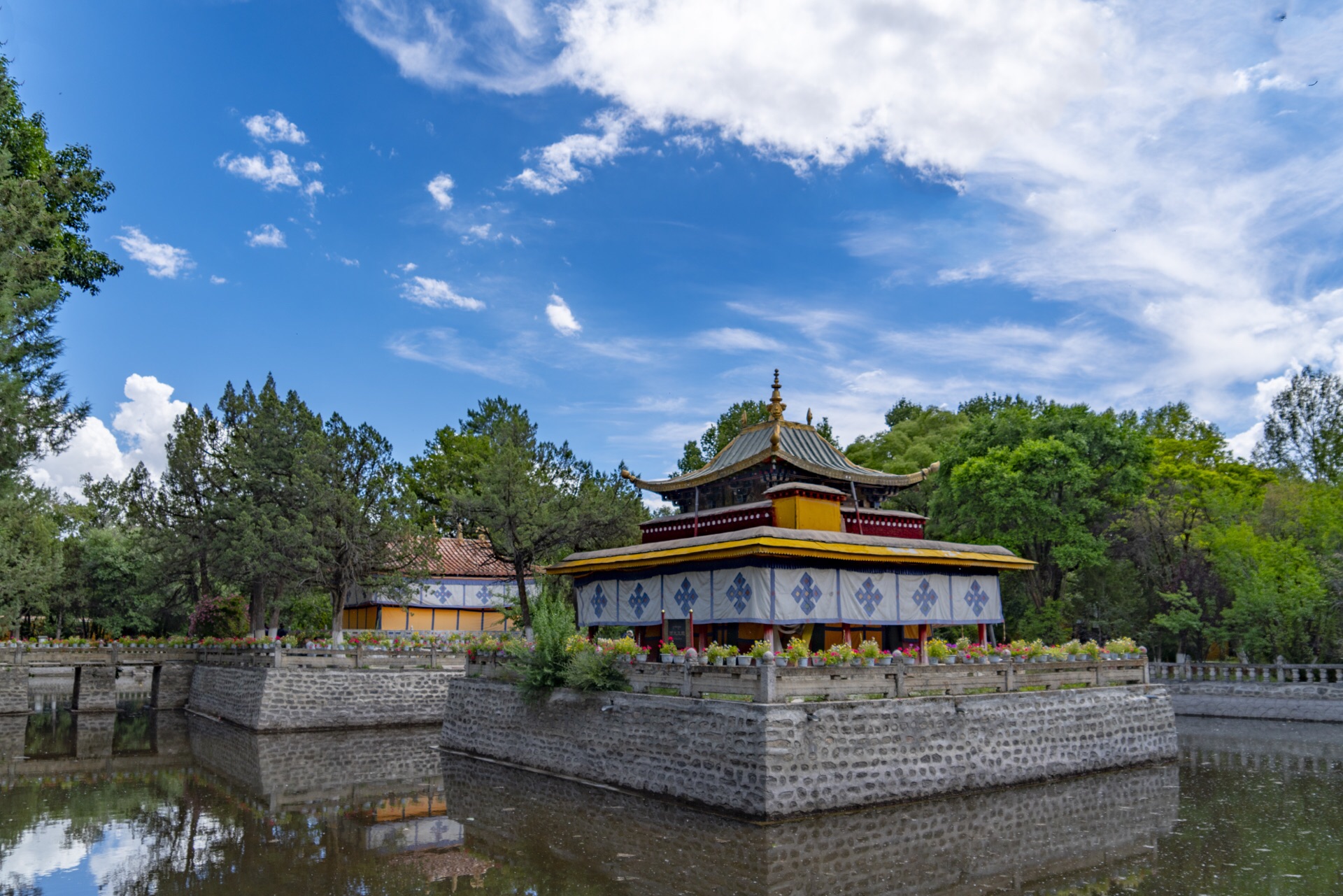 湖心宫是罗布林卡内比较特别的宫殿,中林卡内唯一一个四周有水,建在湖中的一个宫殿,湖不是很大,四...