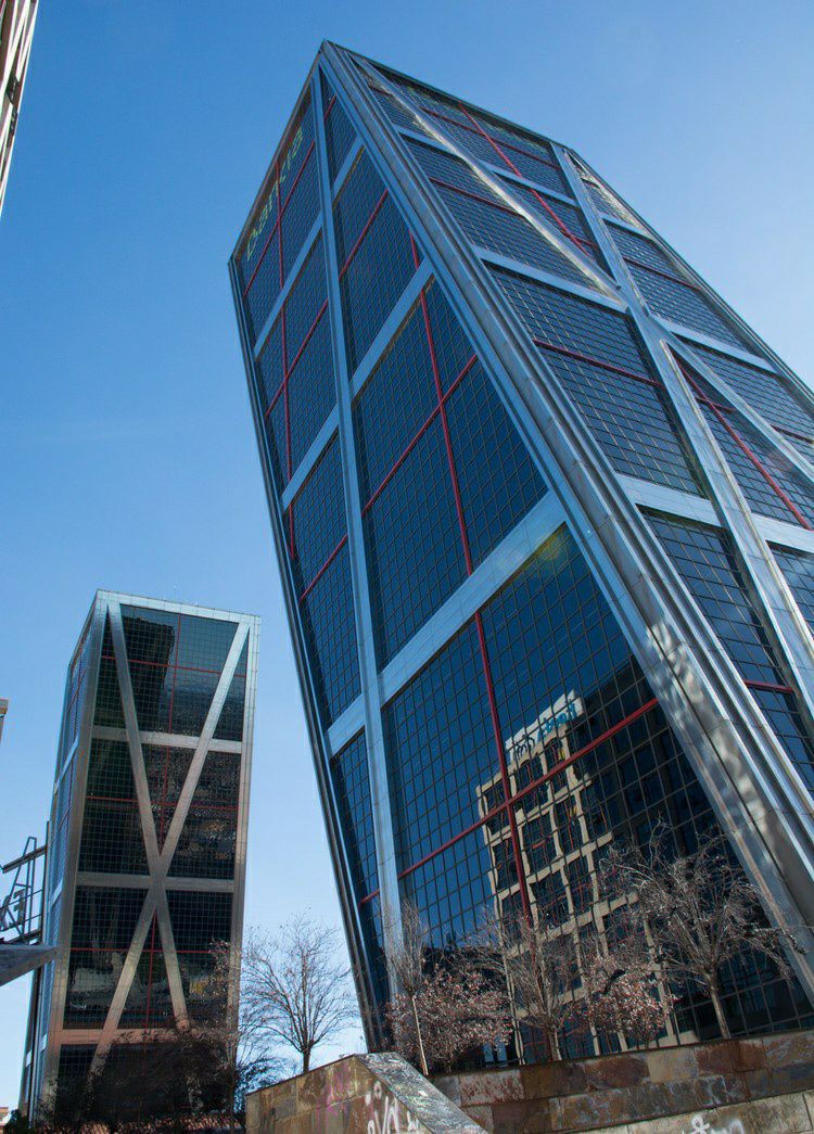 是两栋摩天的写字楼,写字楼各自倾斜了15度,超过了比萨斜塔的倾斜幅度,还是挺漂亮的,也可以过来打个卡马德里商业中心的一个地标性的建筑,是两栋摩天的写字楼,写字楼各自倾斜了15度,超过了比萨斜塔的倾斜幅度,还是挺漂亮的,也可以过来打个卡。