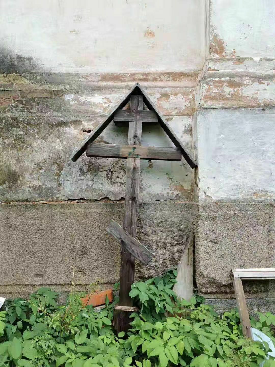 还发现了一个被扔在角落里的十字架;还有被损坏的几个墓碑(虽然自称目的爱好者,但是看不懂上面写的俄文)