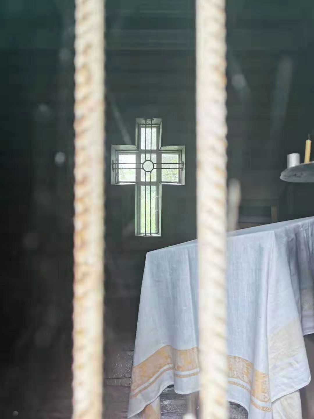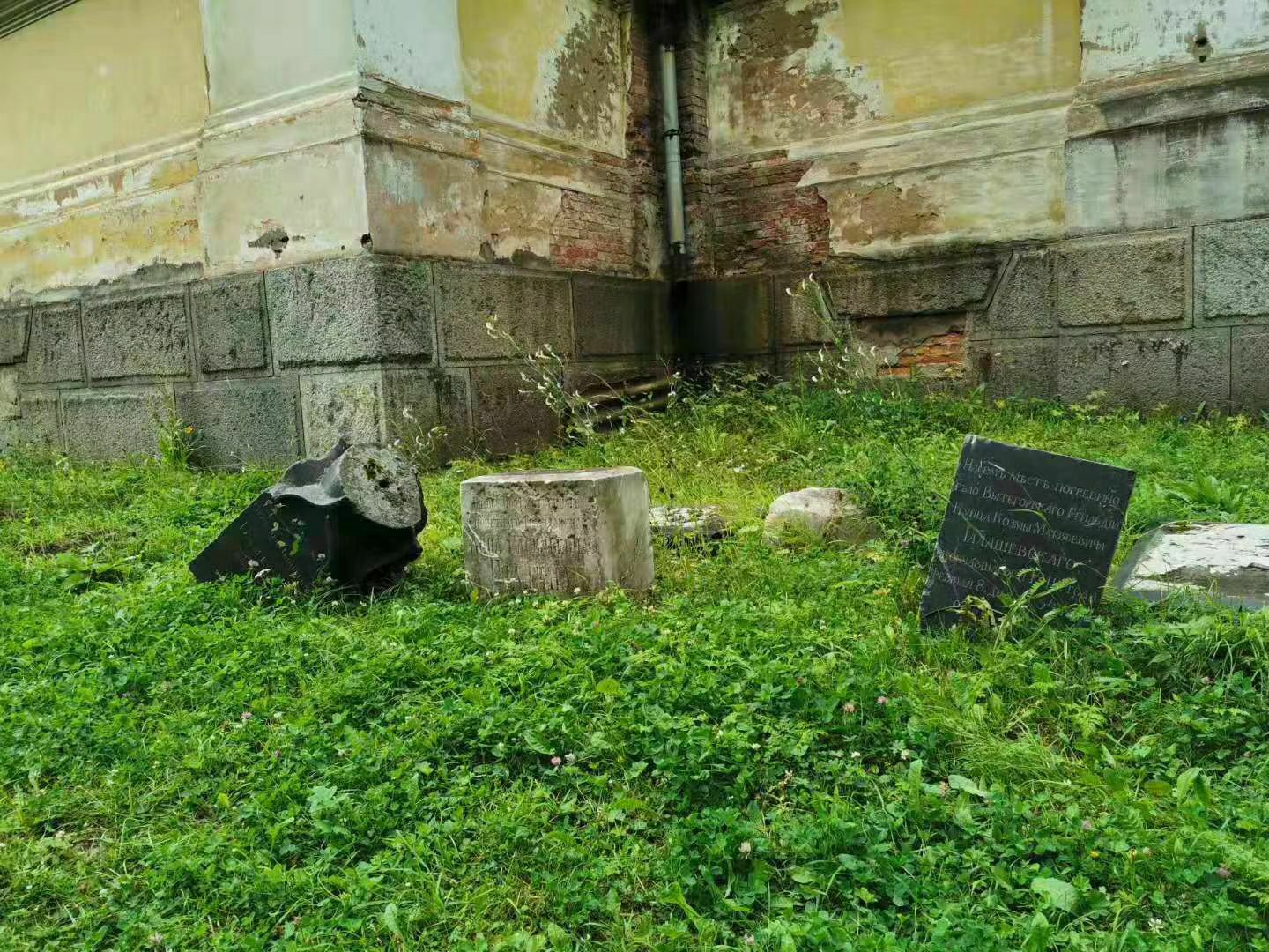 按照导游的线路走完了,利用别人逛商店的时间拉着新朋友走到一处正在修理的半废弃状态的所在,走在杂草荒芜的院子里,发现后面有一个小祈祷室;还发现了一个被扔在角落里的十字架;还有被损坏的几个墓碑(虽然自称目的爱好者,但是看不懂上面写的俄文)