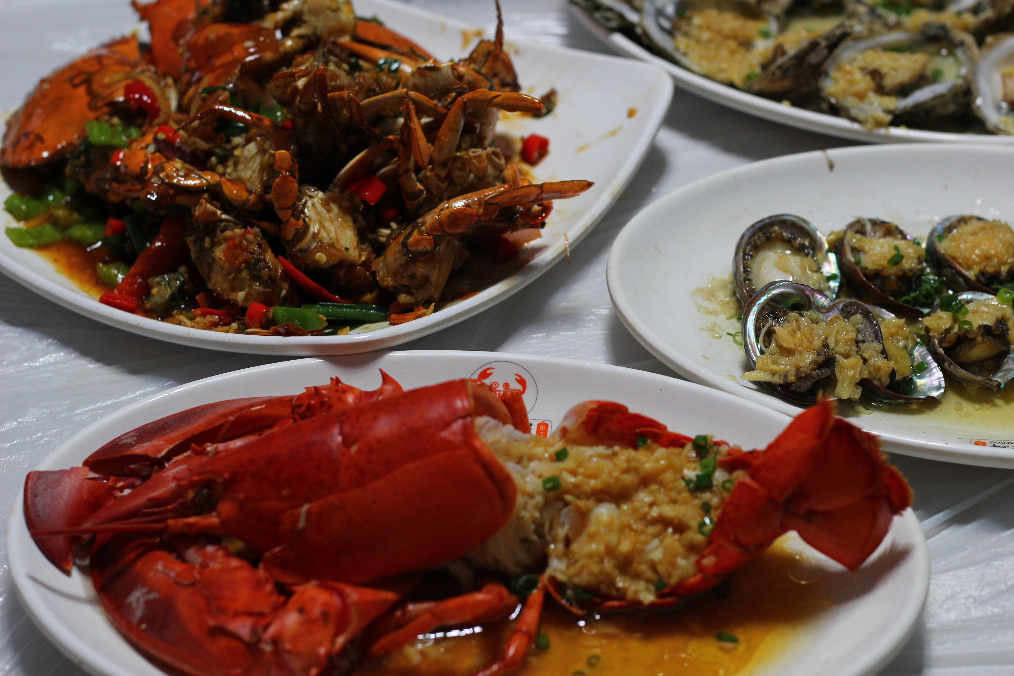 在三亚中,第一市场的火热度算是远近闻名的,即便现在的网络如此的发达,第一市场的火热度依旧不减,反之更火爆了,我跟两个好朋友出行,第一市场真的完全诠释了什么叫“人山人海”,“水泄不通”。 当然,不管什么人在第一市场除了一些买卖商品外,其次的火热度就是海鲜了,民以食为天,说到这里,我就必须要向你们推荐一家很有名的海鲜店铺——林姐香味海鲜店,香辣蟹每一只都肥到爆炸,连蟹壳里都满满蟹黄~避风塘波士顿龙虾超大只,瞬间光盘[嘿哈]海胆蒸蛋香软醇鲜,鸡腿螺、蝴蝶虾...道道鲜美怡人,除了各式海鲜,菠萝炒饭和榄菜四角豆也令人惊喜,还有海南特色饮品“清补凉”,好喝又营养最后严重表扬一下他家的服务,椒盐皮皮虾一上桌,小妹就上来主动为我们剥壳,看着一盘剥好的虾肉,突然有一种被宠爱的感觉是怎么肥四 他家旁边就是第一海鲜市场,真的十分推荐呀,我下次还会来的,我是超阿基推荐你们在节假日可以去尝试一下,绝对会流连忘返的哦~~~~
