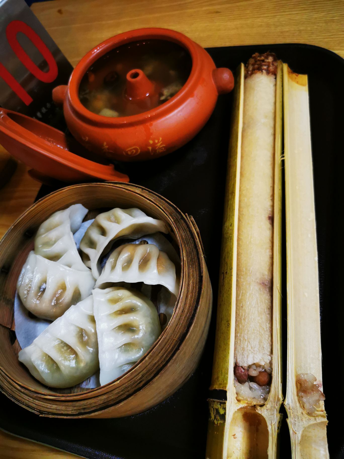 大大锅的云南米线,双人套餐我们三个人吃也足够。米线配料十足,汤底比较清淡(我喜欢,感觉是大骨头熬出来的真材实料的),米线比较碎最后要慢慢打捞否则好多都浪费了。汽锅鸭汤和松茸水晶饺不错。特色破酥包外面是一层层的蒸的酥皮,里面的馅是甜的试一次就好 配料好多自助选择。