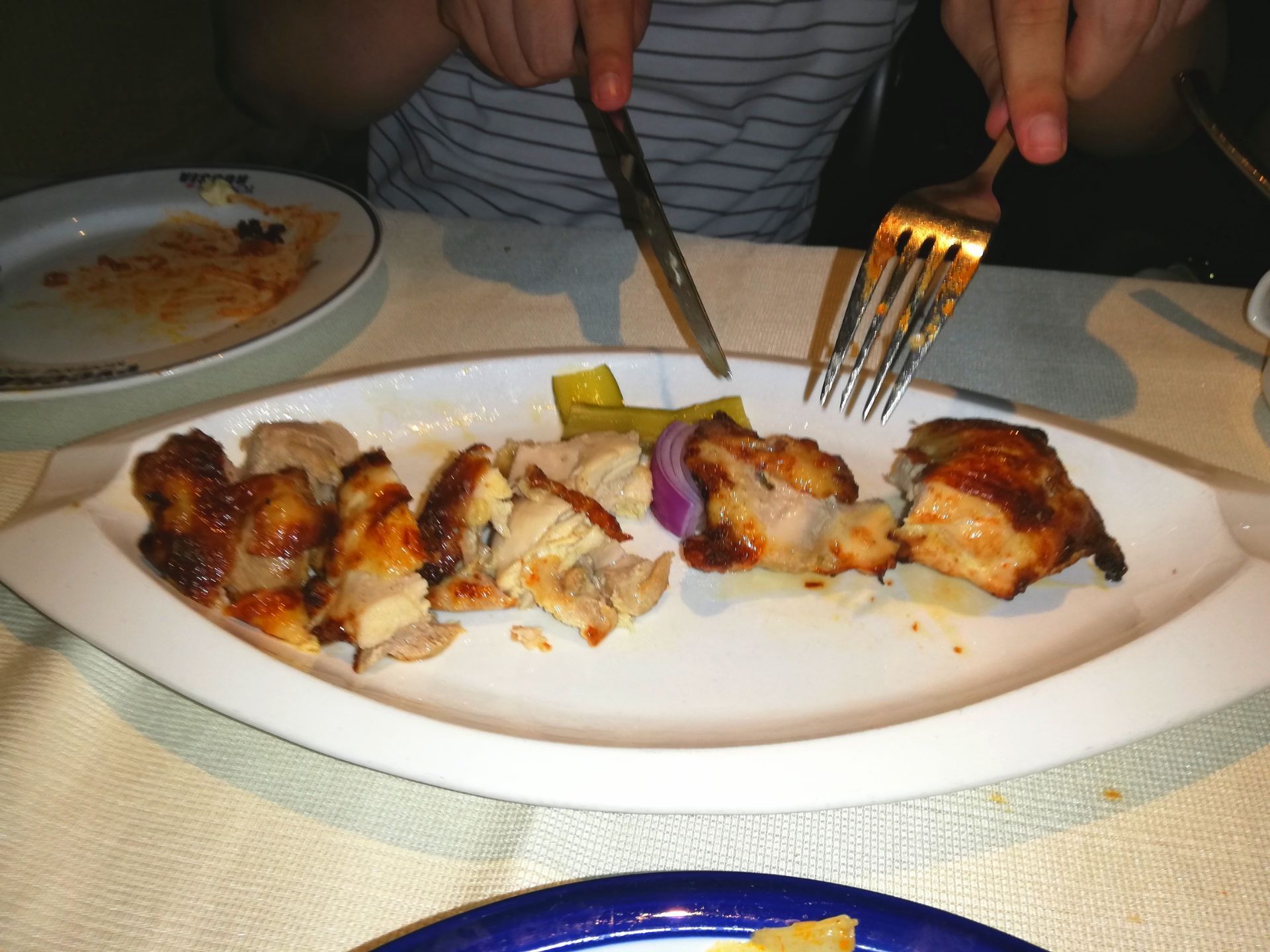 第一次吃俄式西餐,挺新鲜的,餐厅装修很温馨浪漫,非常喜欢这种情调。菜品也不错,有个199元的两人套餐,我们三个人吃,刚开始感觉量少不够吃,就加了个菠萝炒饭,实际上完全够吃,烤鸡腿、烤牛排上来后,就够了,菠萝炒饭基本没有吃,打包了。
