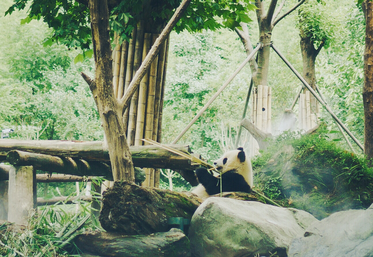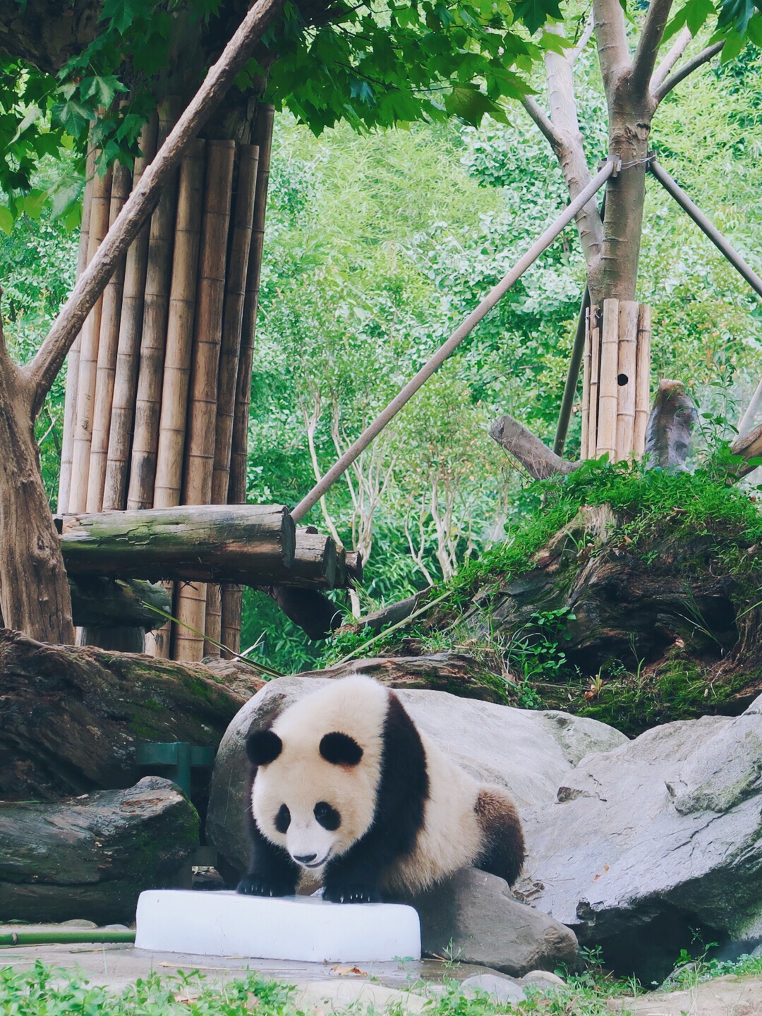 要被大熊猫萌化了啊 来到成都就好像被大熊猫包围了,到处都有大熊猫的元素。 最开心的是在都江堰大熊猫研究保护中心看到了好多只真正的大熊猫。据说有30多只。 大熊猫真是太可爱啦,每一个动作都自带萌点,看着特别治愈。他们会在一个地方躺着一动不动,走起路来也是缓缓的萌萌的,吃起竹子更是躺着吃的,憨态可掬的大熊猫让人喜爱不已,我可以坐在那里看一天大熊猫。 大熊猫喜冷怕热,所以去看大熊猫的时候要选择凉快的天气,早上天气不热它会出来玩,中午太热它就躲到空调房了,可能就看不到啦。 拜水都江堰,问道青城山之旅