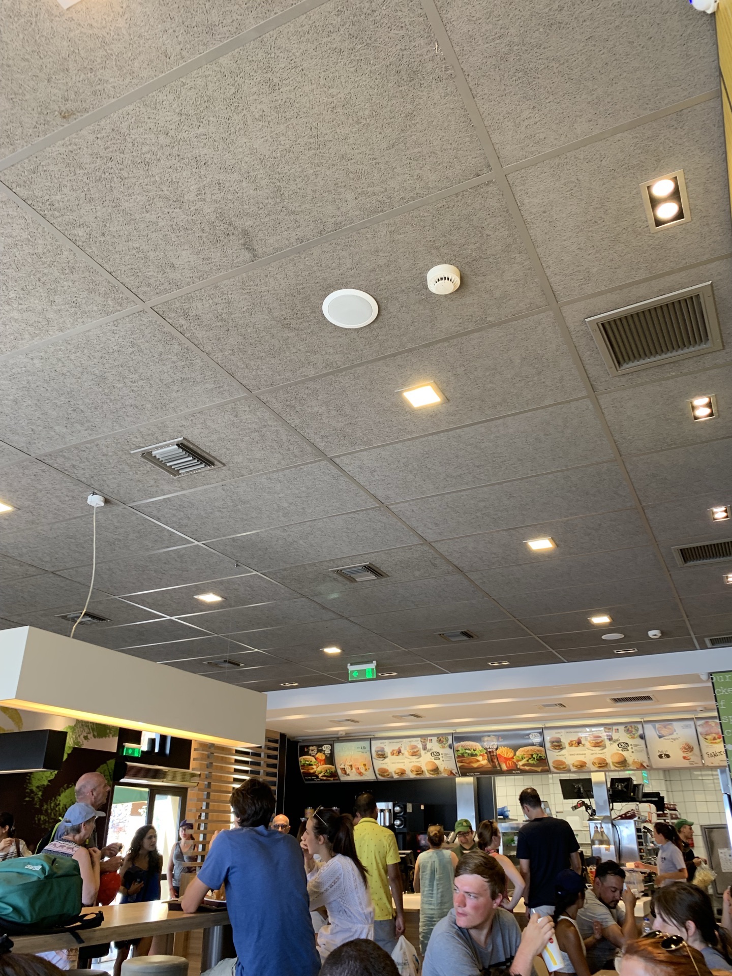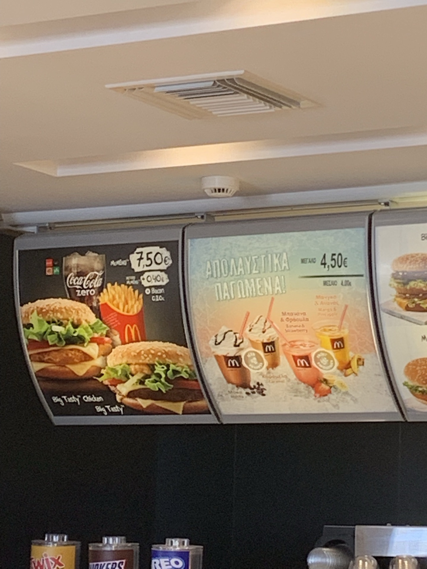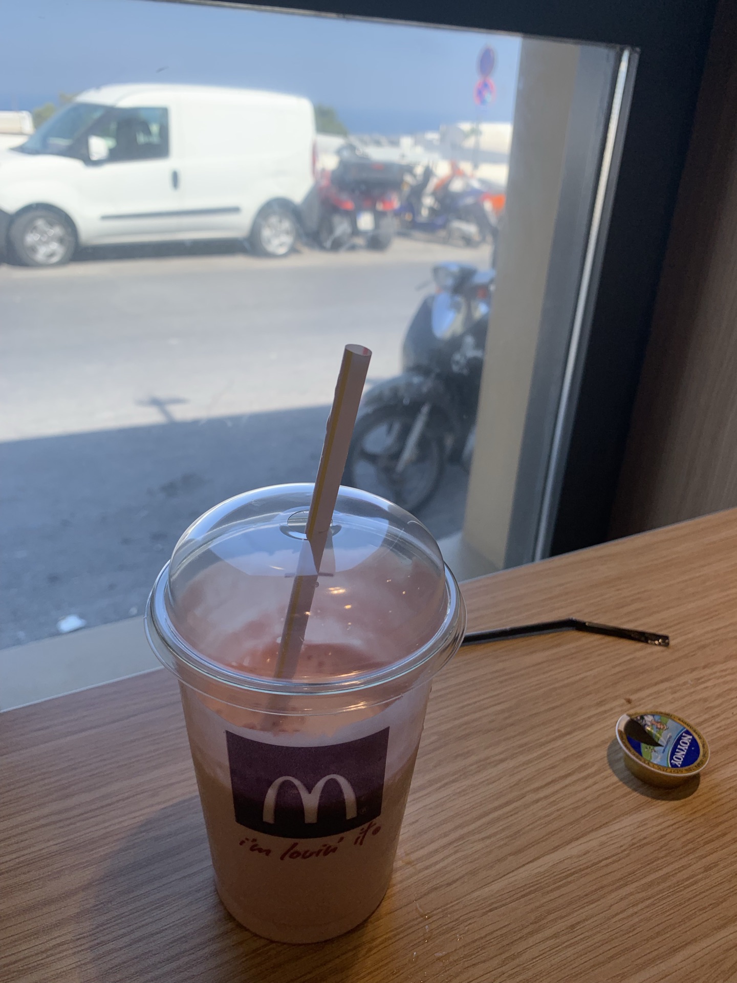 小镇上唯一的一家麦当劳 也是整个岛上唯一一家大型的快餐店 店面的面积还不算小 旁边还有室外的雅座区可以看到远处的海景就餐 一些插头也可以方便食客们充电 还是蛮人性化的 厕所是需要密码的 两个人的汉堡大套餐送了新地和苹果派也就20磅 在岛上算很实惠的店了