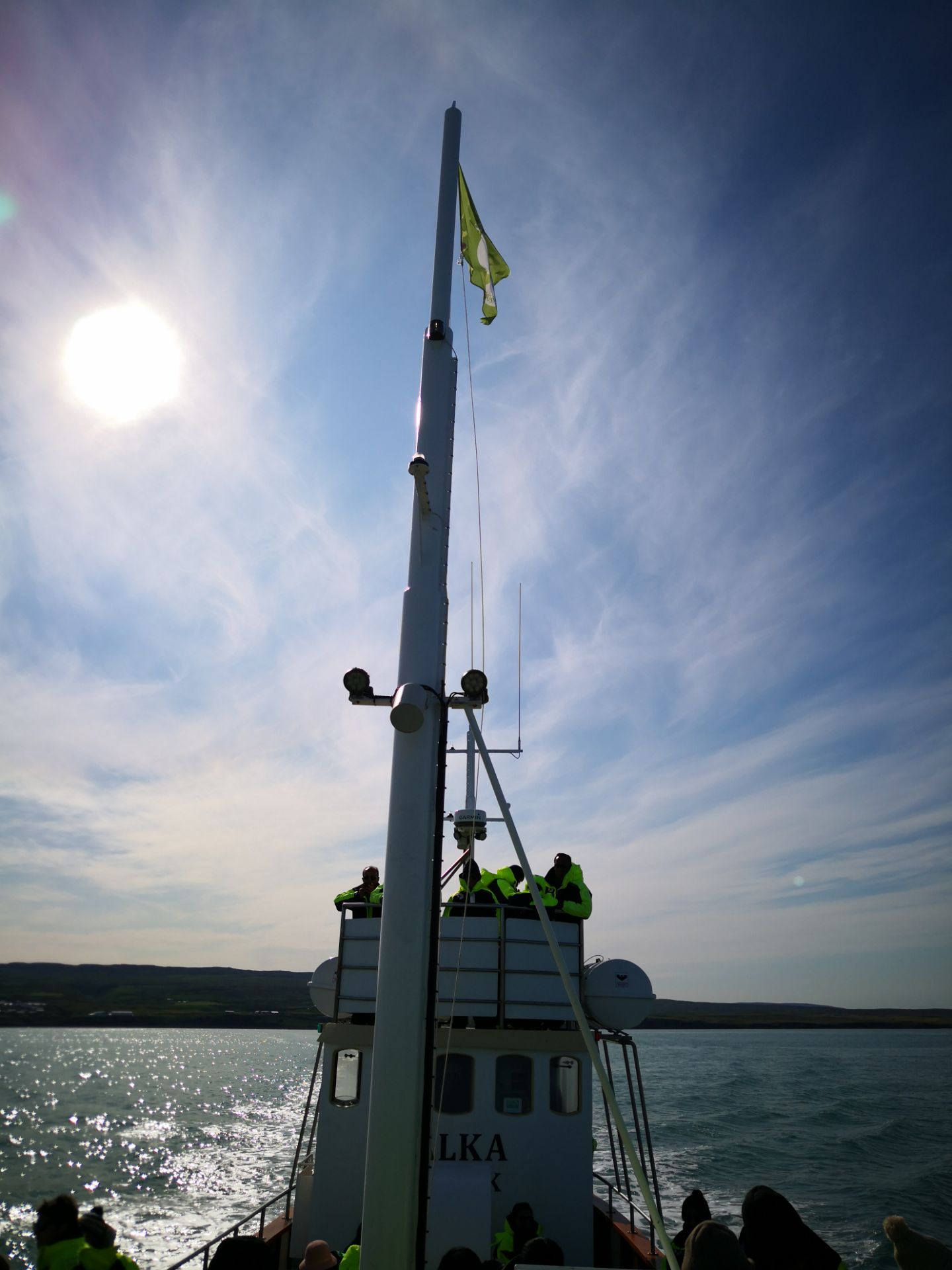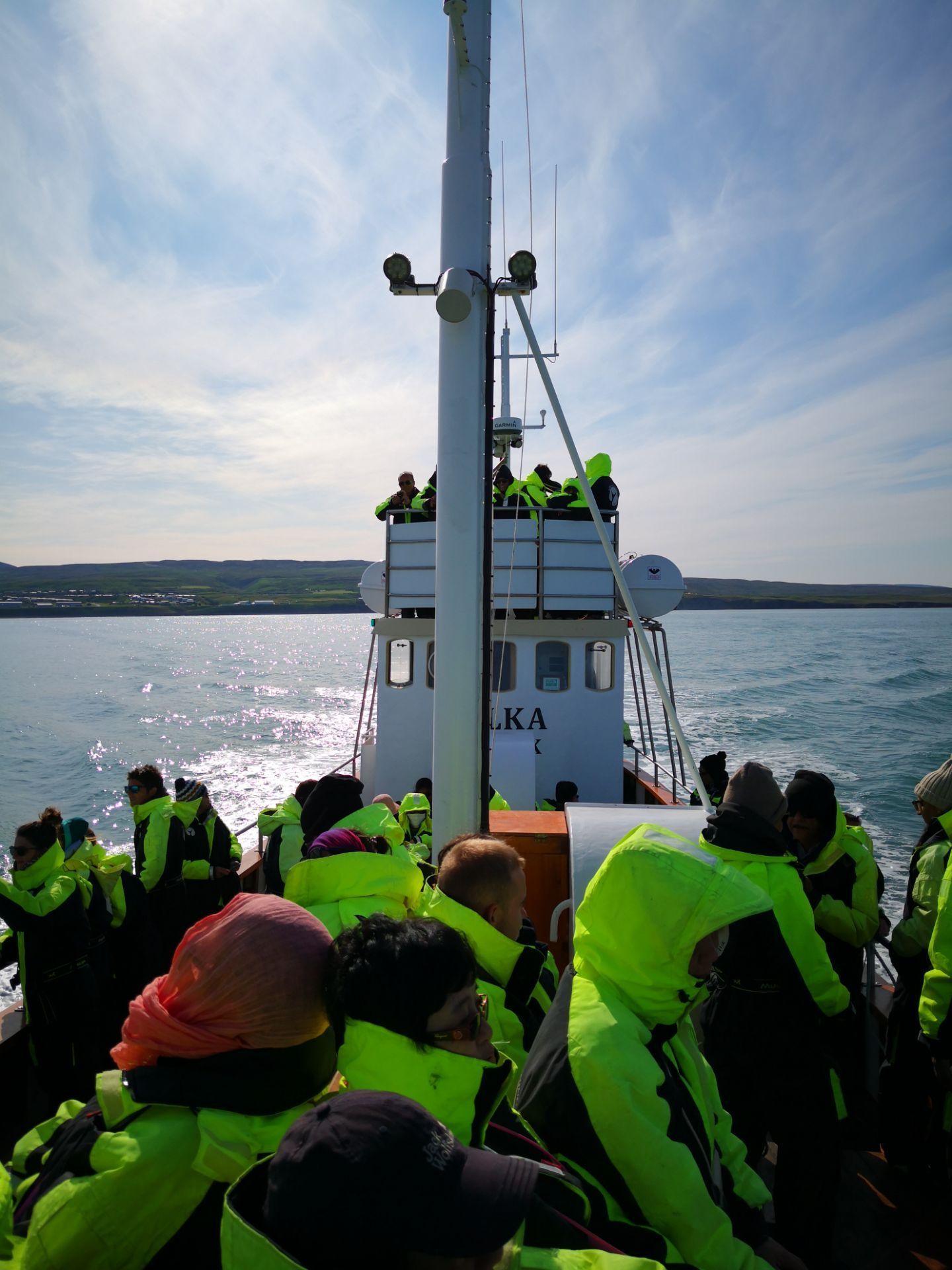 胡萨维克号称“欧洲观鲸之都”,冲着这个名声预定了船票,特意从阿克雷里过去。尽管阳光明媚,港口风不大,但穿着规定的厚厚的服装在整个过程中还是很冷。与波士顿的观鲸相比,这里的价格高,但船小了很多,也没有内仓,有两个伙伴晕船了。整个过程中,只看到一条鲸鱼出没了几次,鲸鱼也不大。与在波士顿看到一家两大一小鲸鱼相比,这里观鲸没有找到理想感觉。