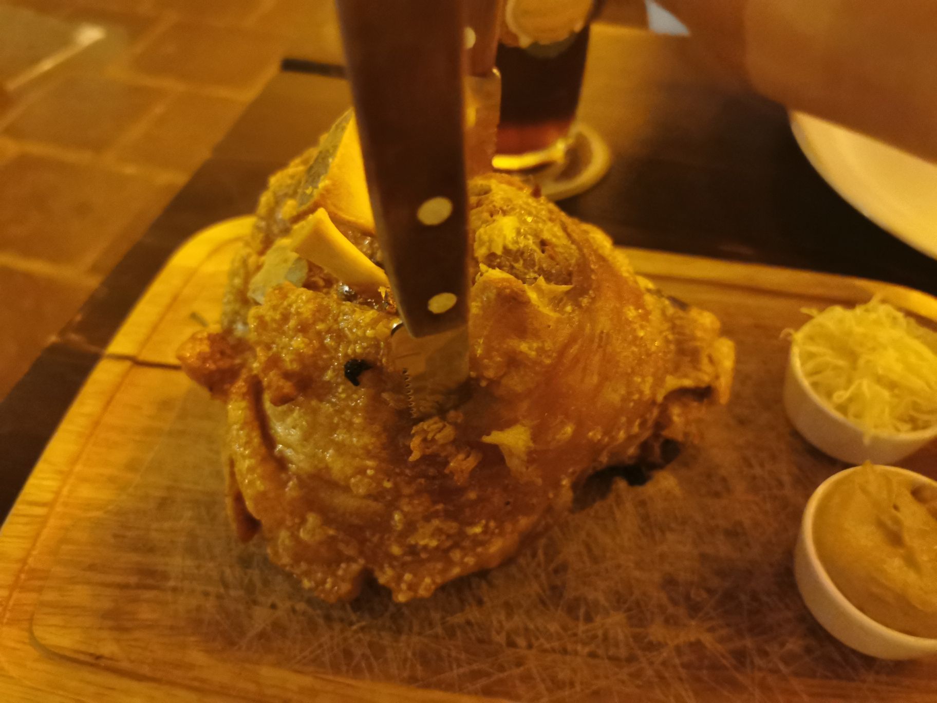 网友2019-08-02维也纳第一餐,猪肘子肉多的把我一个月没吃的猪肉都补齐了。服务不好,服务生装看不见维也纳第一餐,猪肘子肉多的把我一个月没吃的猪肉都补齐了。缺陷是不配酸菜,大缺陷。服务不好,服务生装看不见。小费可不能少给,至少10[%]。OK,如此,江湖一别,后会无期了!