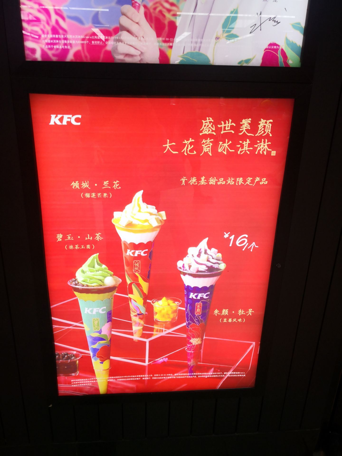 ...的是北海道的牛乳,挺好吃的,就是价格有点小贵,现在是朱一龙代言,盛世美颜大花筒冰激凌,还不错哦长宁龙之梦的肯德基就在地下一层家乐福的对面,她家的冰激凌选用的是北海道的牛乳,挺好吃的,就是价格有点小贵,现在是朱一龙代言,盛世美颜大花筒冰激凌,还不错哦