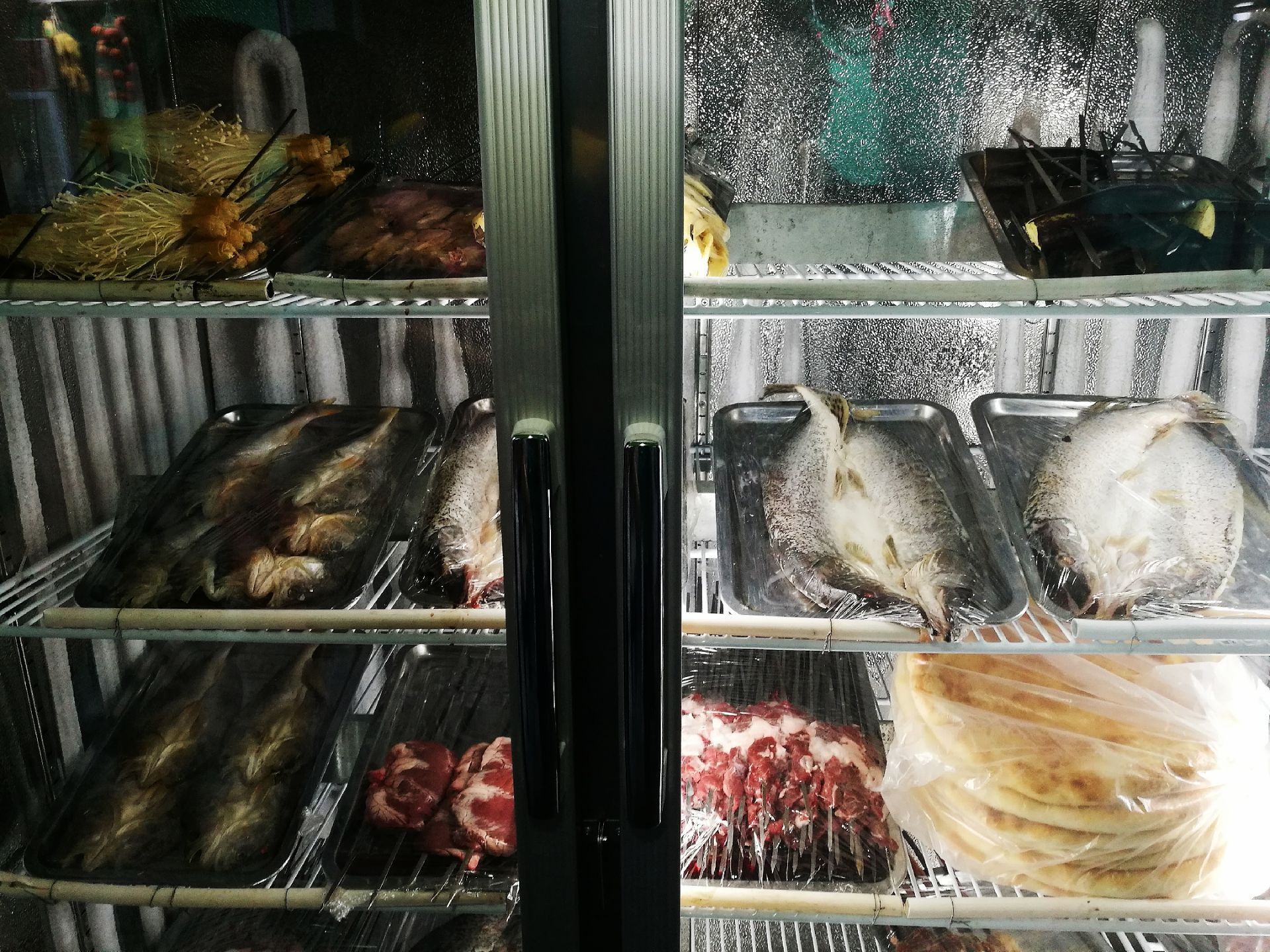 到了布尔津,就听导游说在这要做好吃饭被宰的准备。所以到幸福家园吃饭点菜前就做好斗智斗勇准备,不过老板还是很实在,每个菜都和我们讲好价格,菜肴都在冰柜现点,看起来还算公道。烤狗鱼不大,必点菜,口味偏咸,老板说这是他们特色,就这么重口味。烤羊肉串有3元和5元一串的,大小之区分。八个人吃了500元,还好没有太过分。