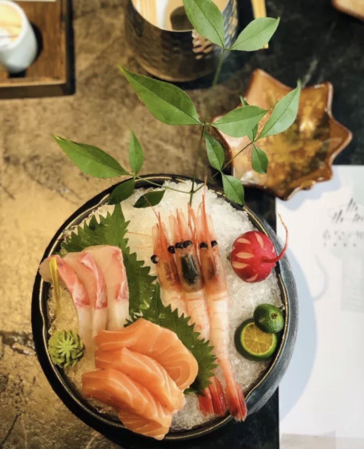 首先,装修是并不是很传统的日式风格,比较现代,餐厅采光很好,白色的纱窗很有意境,餐具也很考究,玻璃杯底是富士山造型,很有特色。 菜品种类繁多,价位和品质成正比!很适合家庭聚餐或者现代朋友。 食材很新鲜,点了三文鱼,甜虾等刺身都非常棒,连不敢吃生食的老妈都尝试了。明太子年糕口感很独特,造型摆盘也很特色!点了七八个菜没有一个踩雷! 服务态度100分,从进门到落座,都能感受到微笑和热情服务。