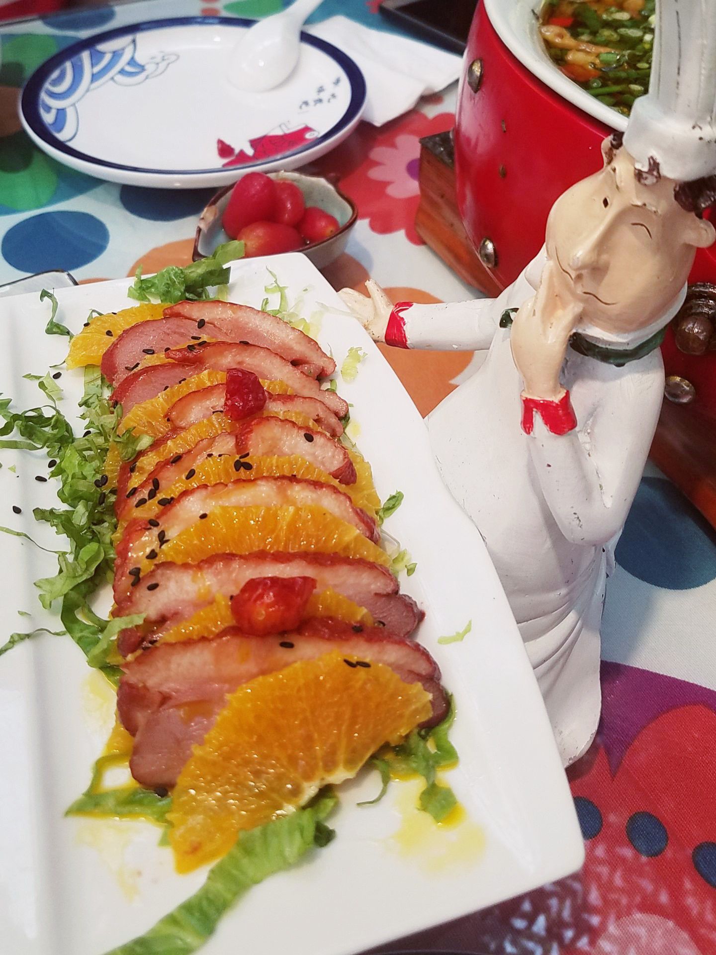 第一次吃酱油师傅,在一条小街上,用居民楼的一楼铺面改的,很不起眼。里面也不太宽,人多的话还真有点挤。中午去的,人不多。点了一个香橙鸭,切成一片一片的,中间夹得有橙子。味道还行。豆腐脑花味道不错,有点像麻婆豆腐。水煮鱼片鱼肉还嫩。总体感觉味道还不错。