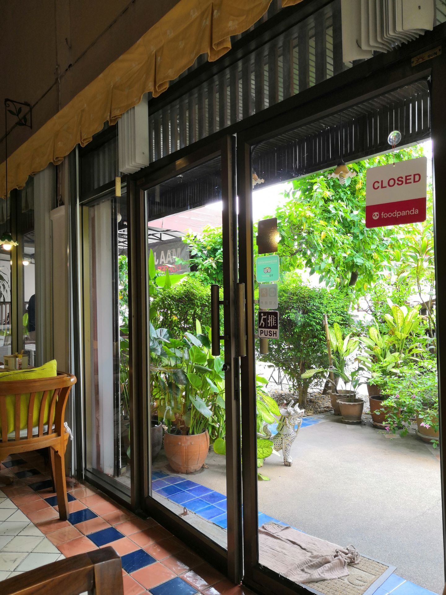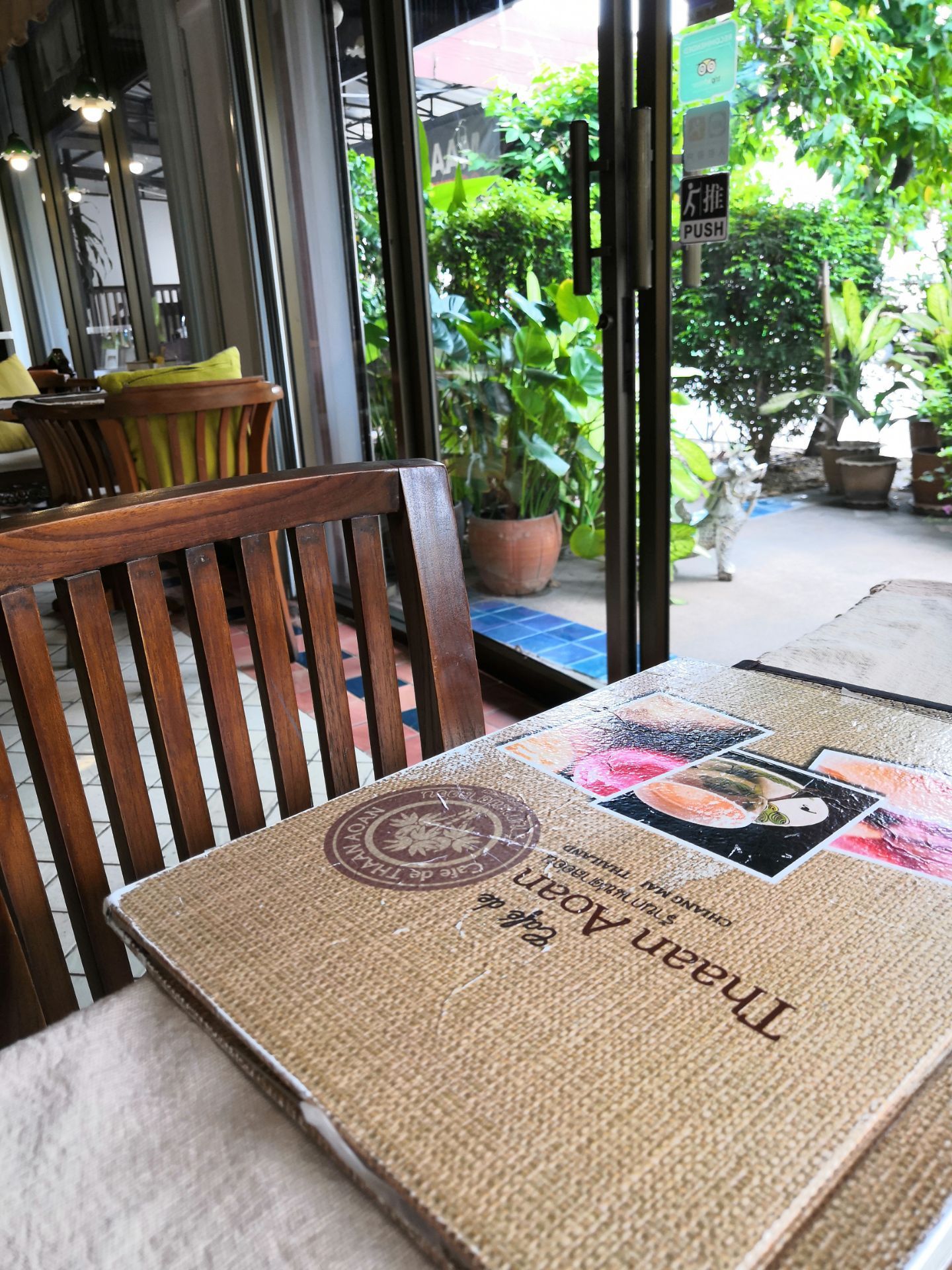 在古城逛寺庙来的,去了帕辛寺、契迪龙寺(大佛塔)。走累了想找个地方歇脚,一眼看到了这里,一家兼营泰国菜的咖啡屋。不到饭点只要了咖啡和茶。后来知道是家网红店,环境不错吸引了不少欧洲客,邻桌的一对欧洲情侣还相互在对方的盆子里舀食狂秀恩爱呢。