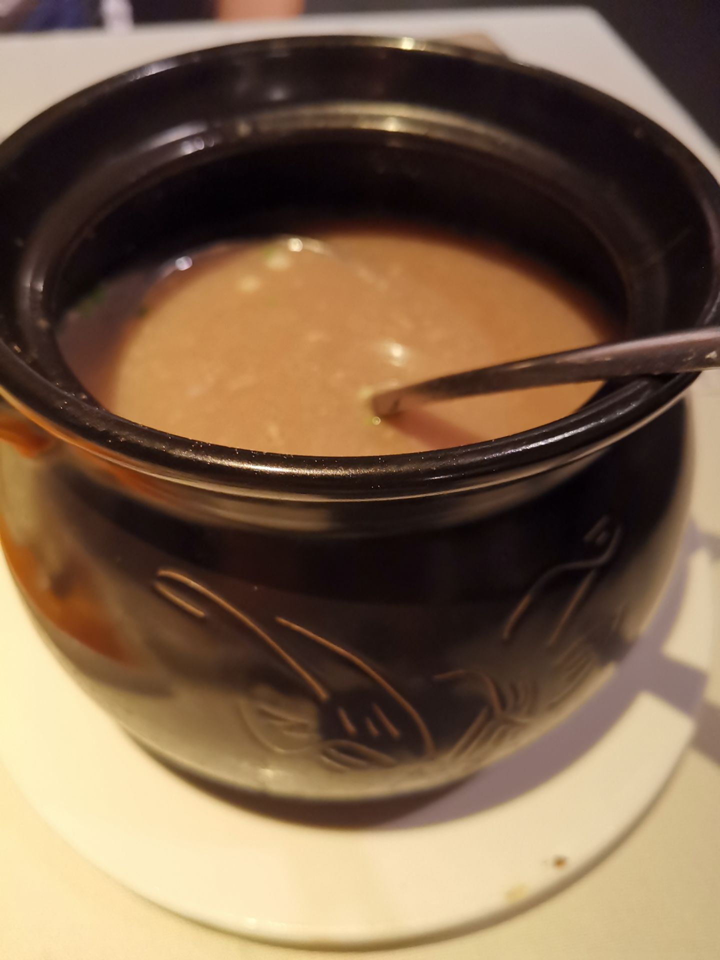 飞机到浦东机场的时候,我们感到很累,加上买不到回南京的票了,就在上海住一晚吧,酒店选在地铁二号线的中山公园地铁站。放下行李,走在街上,就看到了这家店。点了莲藕排骨汤,武昌鱼,还有一个素菜,感到莲藕排骨汤莲藕味道远远大于排骨,武昌鱼被切成一小块一小块的,这样也把刺切断了,反而吃时不好吐刺了。
