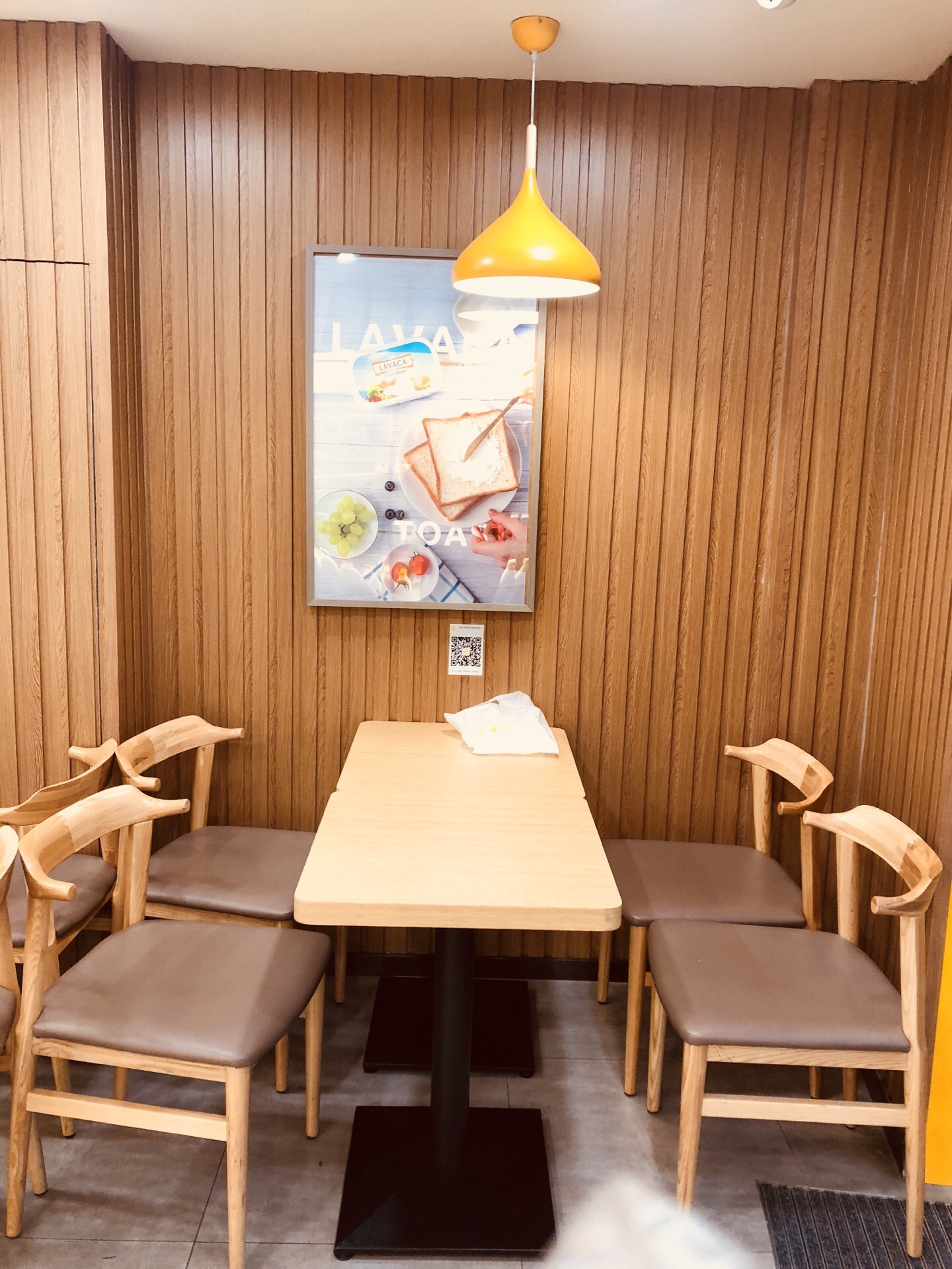 色彩用淡黄的暖色调,很温馨,两三个餐桌可供客人休憩,挂的照片十分诱人[色],让人有食欲