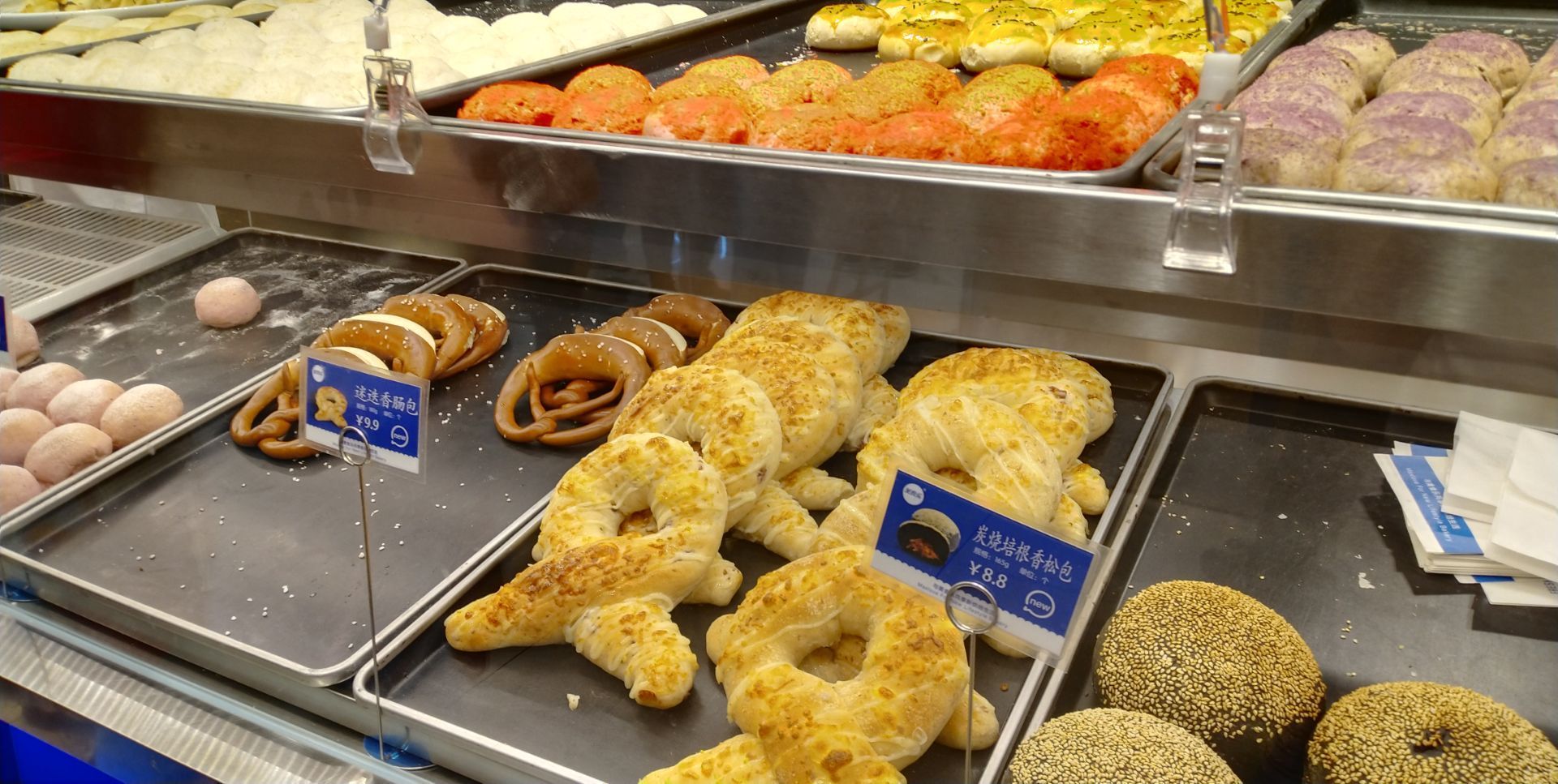 ...傅们在现场制作面包,不方便吧,还可以品尝试吃,购买的人还是很多的,面包的品种也角其他的店品种多在刚刚开业的让胡路万达广场的一层,可以看到师傅们在现场制作面包,不方便吧,还可以品尝试吃,购买的人还是很多的,面包的品种也角其他的店品种多。