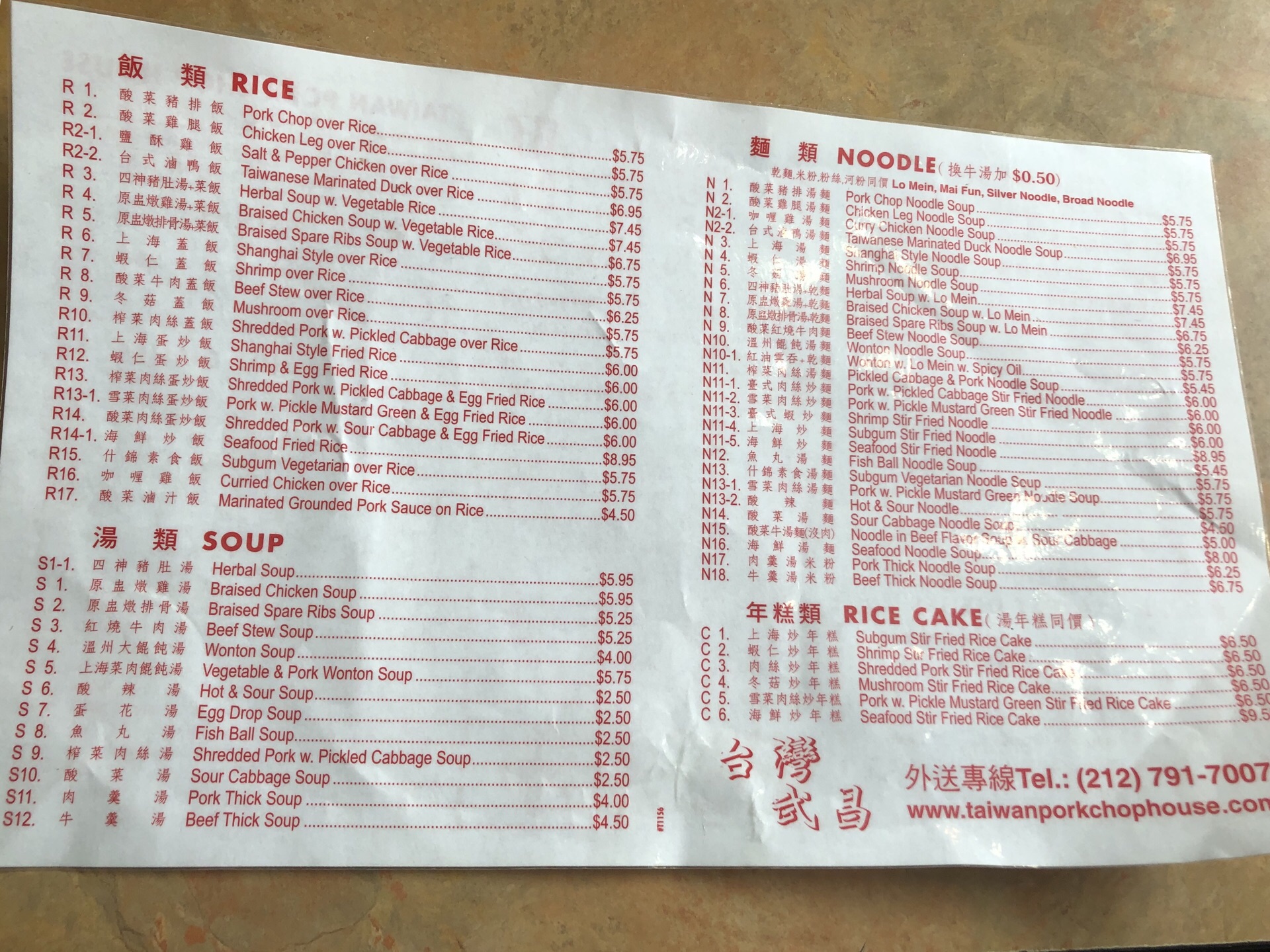 据说是比较正宗的台湾餐,店面装修一般,都是亚洲面孔在用餐,所有菜价格都不高:猪排饭不错,牛羹面...