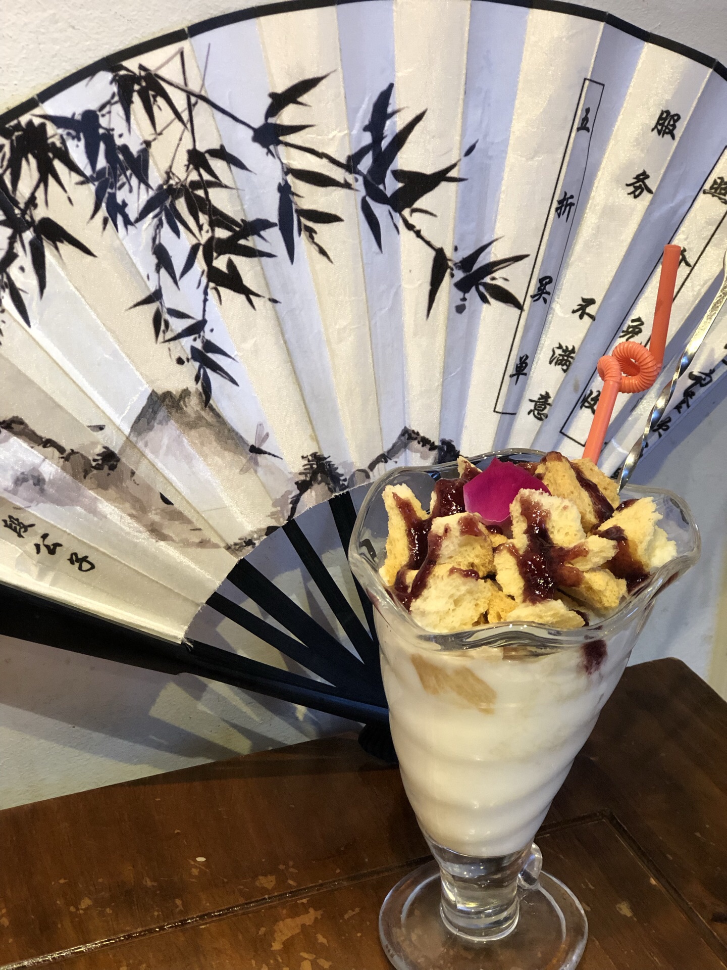 还有当地特色的饮品:泡鲁达,底下是酸奶,上面是面包脆,可以直接喝酸奶,也可以把面包脆泡软了喝...