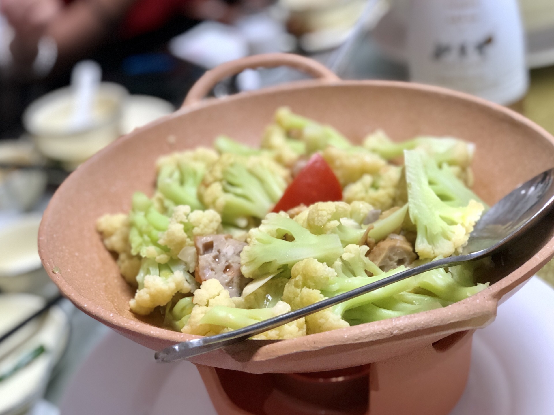 鲜食代位于濠头夏商怡庭酒店隔壁,海沧大桥的上桥口。门口的小院清新别致,装修风格很有闽南古厝的味道,红砖白墙,公鸡碗都很复古怀旧。 主食兴化米粉,米粉细腻如丝,吃起来口感很棒! 水煮三鲜,点的还是小份的简直不敢相信!用料特别祖,虾和小管都很新鲜。 大蒜炒猪肝,酱汁入味,猪肝鲜嫩爽滑。 萝卜煲,萝卜非常软绵,有入口即化的感觉! 整体来说,菜的口味还是很ok的,关键菜的分量真的很足,非常实在!下次部门聚餐再来~