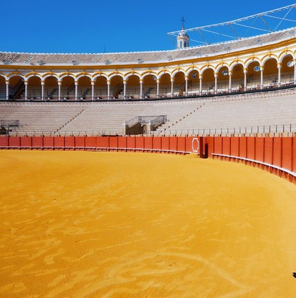 ...黄色的中心表演场地加上红色的点缀颜色,特别符合斗牛的那个氛围,这里还有斗牛场的陈列馆,挺不错的斗牛场里面还是挺漂亮的,黄色的中心表演场地加上红色的点缀颜色,特别符合斗牛的那个氛围,这里还有斗牛场的陈列馆,挺不错的。