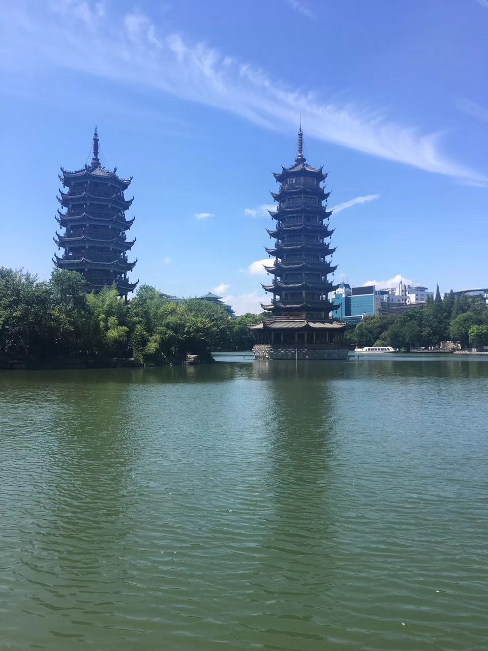 网友2019-08-04...片,位于杉湖之中的两个情侣塔,日塔铜制,被称为金塔,月塔被称为银塔,琉璃所制,所以又称为金银塔桂林双塔是除了象鼻山之外的另一张名片,位于杉湖之中的两个情侣塔,日塔铜制,被称为金塔,月塔被称为银塔,琉璃所制,所以又称为金银塔。下面湖底有隧道相连。