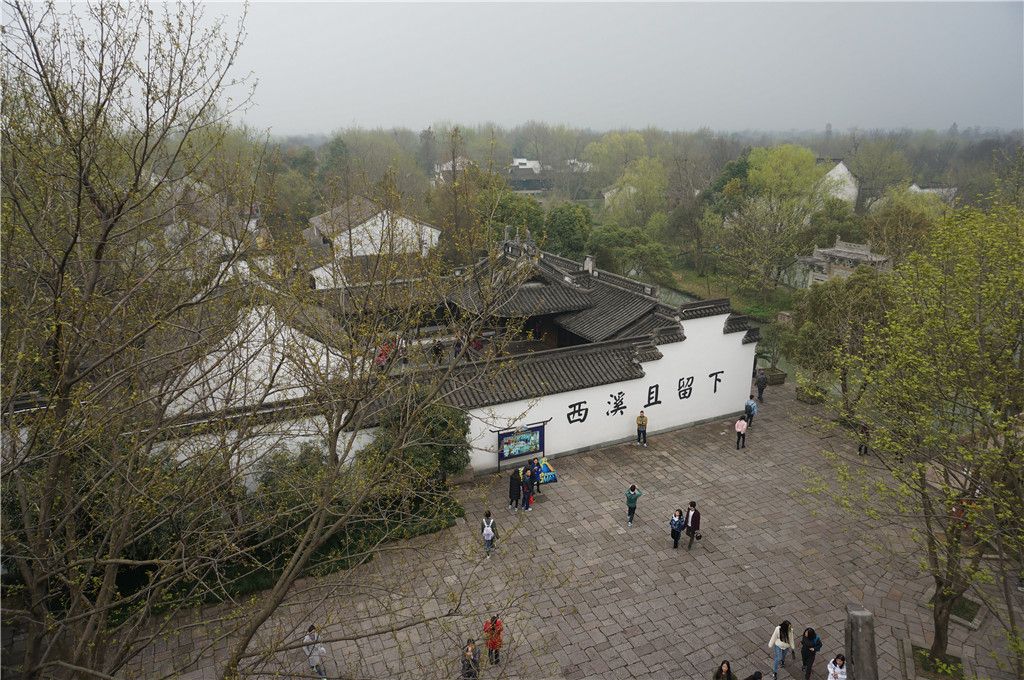因为西溪湿地公园内大多是低矮的仿古建筑以及自然景观,所以高耸的河渚塔显得特别突出,而且还有来历,始建于清咸丰年间,不过当时乃石塔,现在看到的是移建后的新塔。塔基宽阔,设有栏椅,方便游人憩息。牌匾上书“汇观”两个繁体字,描述的是当你沿着陡峭的台阶登上塔的最高层,就可以用一个非常棒的角度俯视西溪湿地公园以及河渚古街的美丽景色。