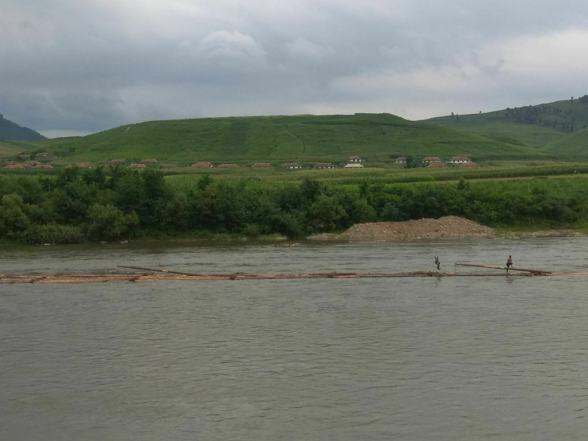 公园不错,凉爽怡人,对面就是朝鲜,地理位置比较特殊公园不错,凉爽怡人,对面就是朝鲜,地理位置比较特殊。行人也可以游船玩玩,100一位还是比较贵的,看到了朝鲜人在河中放排运木料,对面有人在淘金,有人在种地。