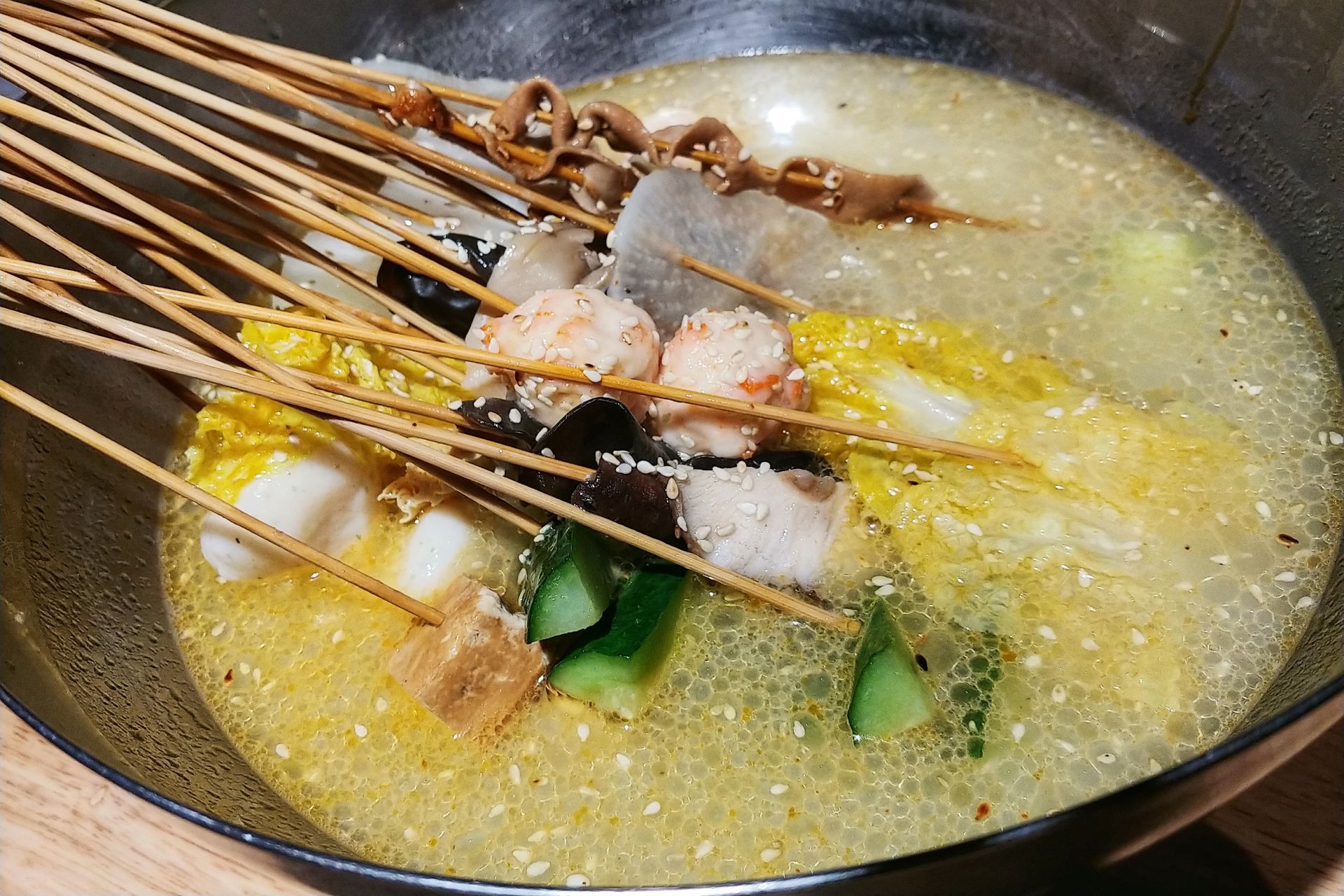 到底是网红店,晚上八点多钟到的,依然是差不多满座的样子。 地铁前往是最为方便,离夫子庙站几百米远的距离,饭前散步亦或饭后消食都是不错的。 串串口味特别好,上菜也挺快的,汤底的味道吃得挺舒服的,吃完不会口干。其实觉得就吃串串就足够好,顶多再加个冰粉,这么吃应该是性价比最高的了。试了土豆脑花和糍耙,都觉得算普普通通没有被惊艳。 邻座一对是还在彼此试探阶段的男女初情侣,女生正装危座,男生拼命开启话题。真是连吃饭都累但当事人却乐在其中的阶段啊。