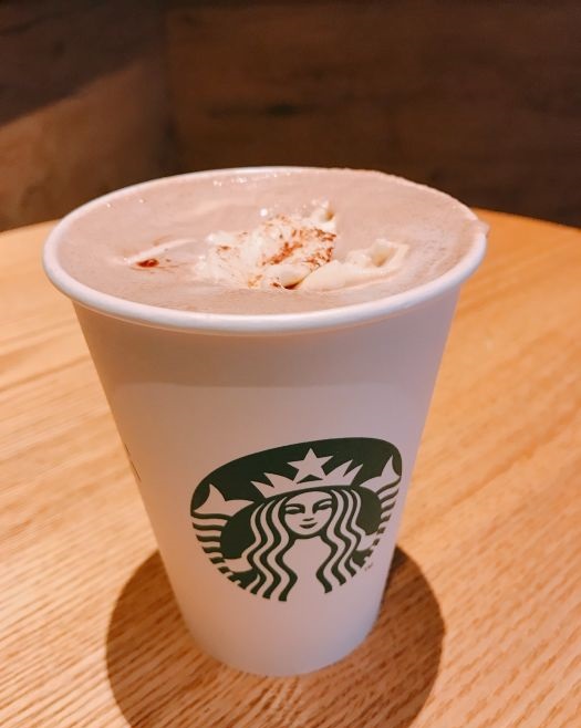 工作日的下午茶时间,商场里爆多人是为什么。点了杯热巧克力,被问到奶油要不要,怎么之前从来没有人问过,想起喝了几次桃花满满抹茶拿铁也只有一次被问要什么甜度,大概小姐姐们也都是看心情吧,高兴就多唠两句。