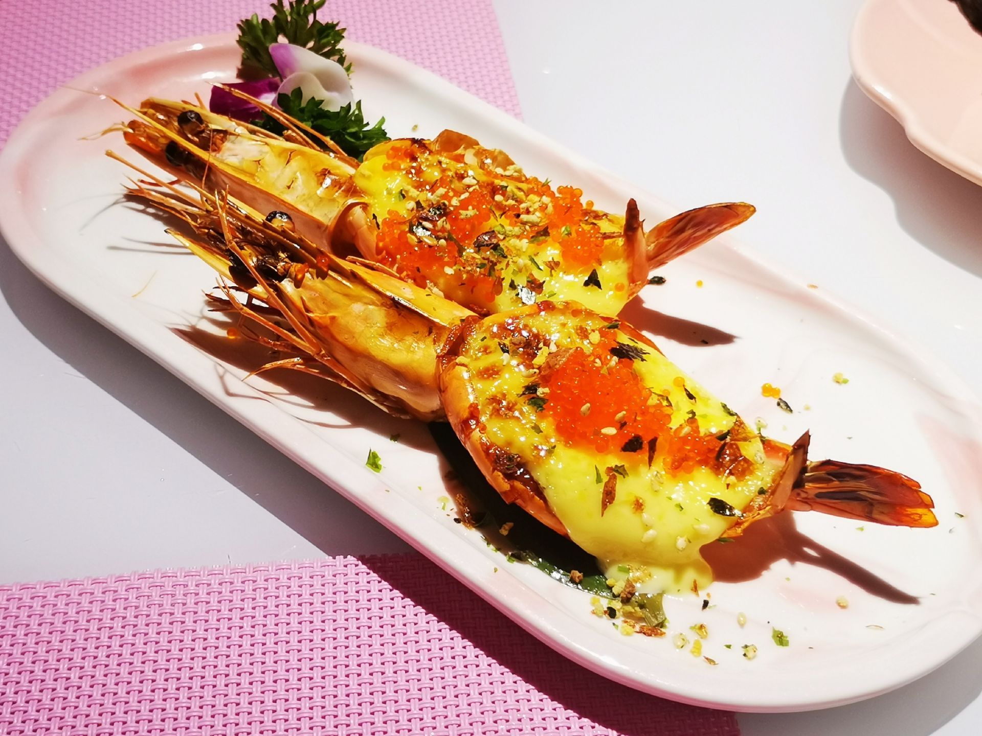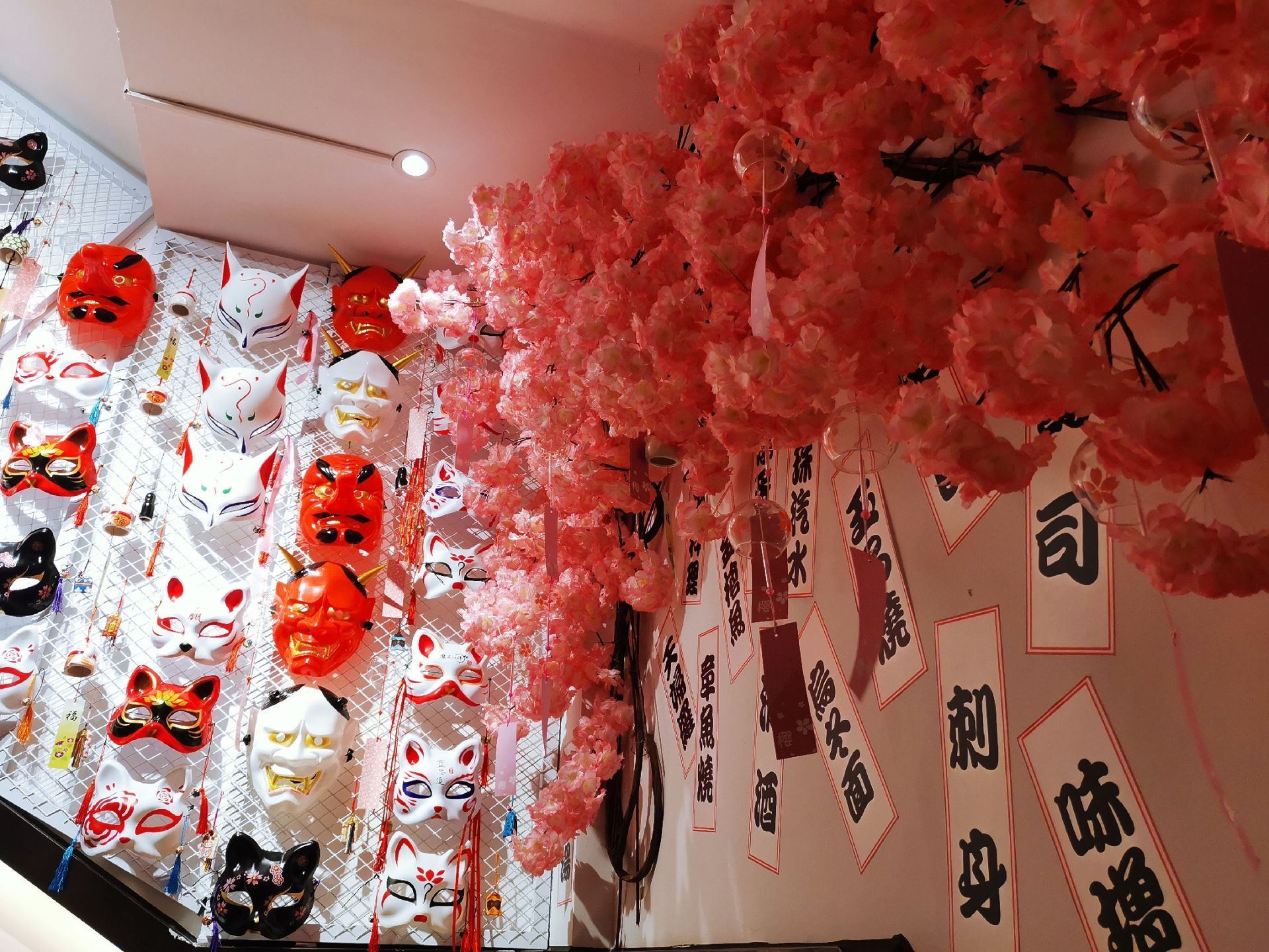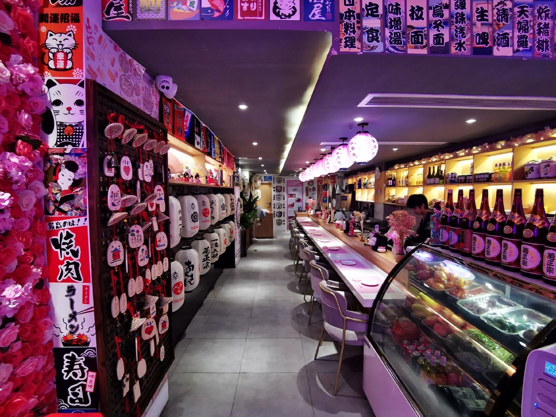 这家粉色系的日料店,去了就想谈恋爱 乐云棚网红料理位于镇邦路47号,隐藏在中山路旁的巷子里。一进餐厅,网红ins粉色系装修风格再加上随处可见的人偶、面具、提灯、油纸伞等日本元素的点缀,给人唯美浪漫的感觉,完美的设计颠覆我对日料店的传统装修风格的印象。 推荐在二楼用餐,静谧的环境,活泼的色调,柔和的灯饰,还有网红玻璃球吊椅、公仔、浴缸,这样的环境不仅适合品味日料的魅力,更让人忍不住拍拍拍,餐厅还提供和服,穿上和服拍照打卡,真是敲美哦。作为单身狗,在如此粉嫩梦幻的餐厅,真的有想去谈恋爱的冲动❤。 【寿司】这次点了什锦寿司拼盘和曼谷风情卷,不同种类的寿司带来不一样的味蕾体验 。 【芝士焗大虾】芝士味浓,虾肉鲜甜,虾的个头也不小。 【牛肉饭】份量十足,满满一大份牛肉,这么大的份量适合两人食用,牛肉饭上还有粒温泉蛋,一口吃下去超满足。 【芒果蟹子沙律】芒果粒、蟹籽和沙拉完美地融合在一起,酸酸甜甜的,营养丰富。 【三文鱼头】虽然造型有点吓人,不过微焦的鱼皮香香脆脆的,鱼肉肉质软嫩,特别入味。 人均大约100元,很喜欢这样让人少女心满满的餐厅。