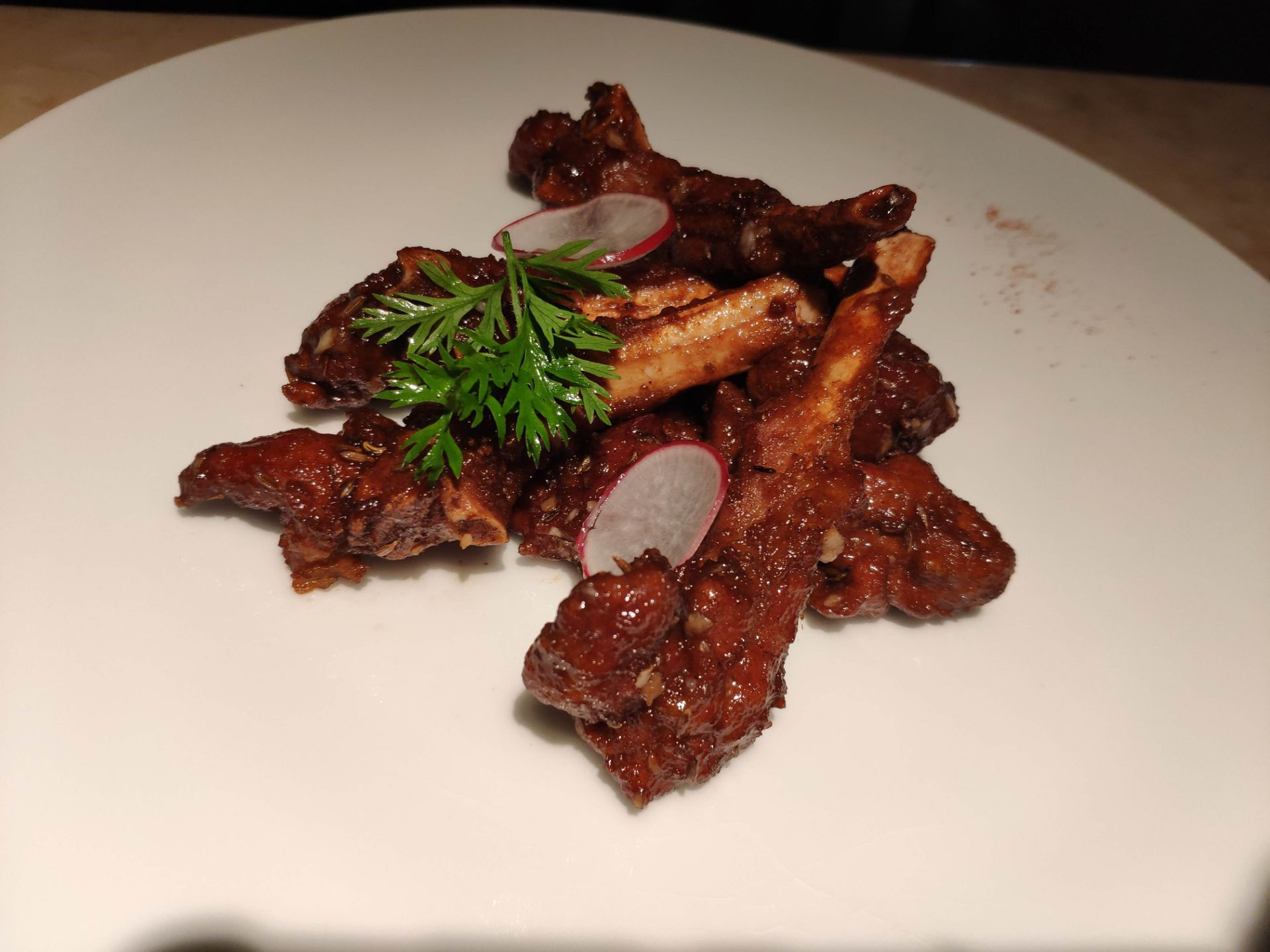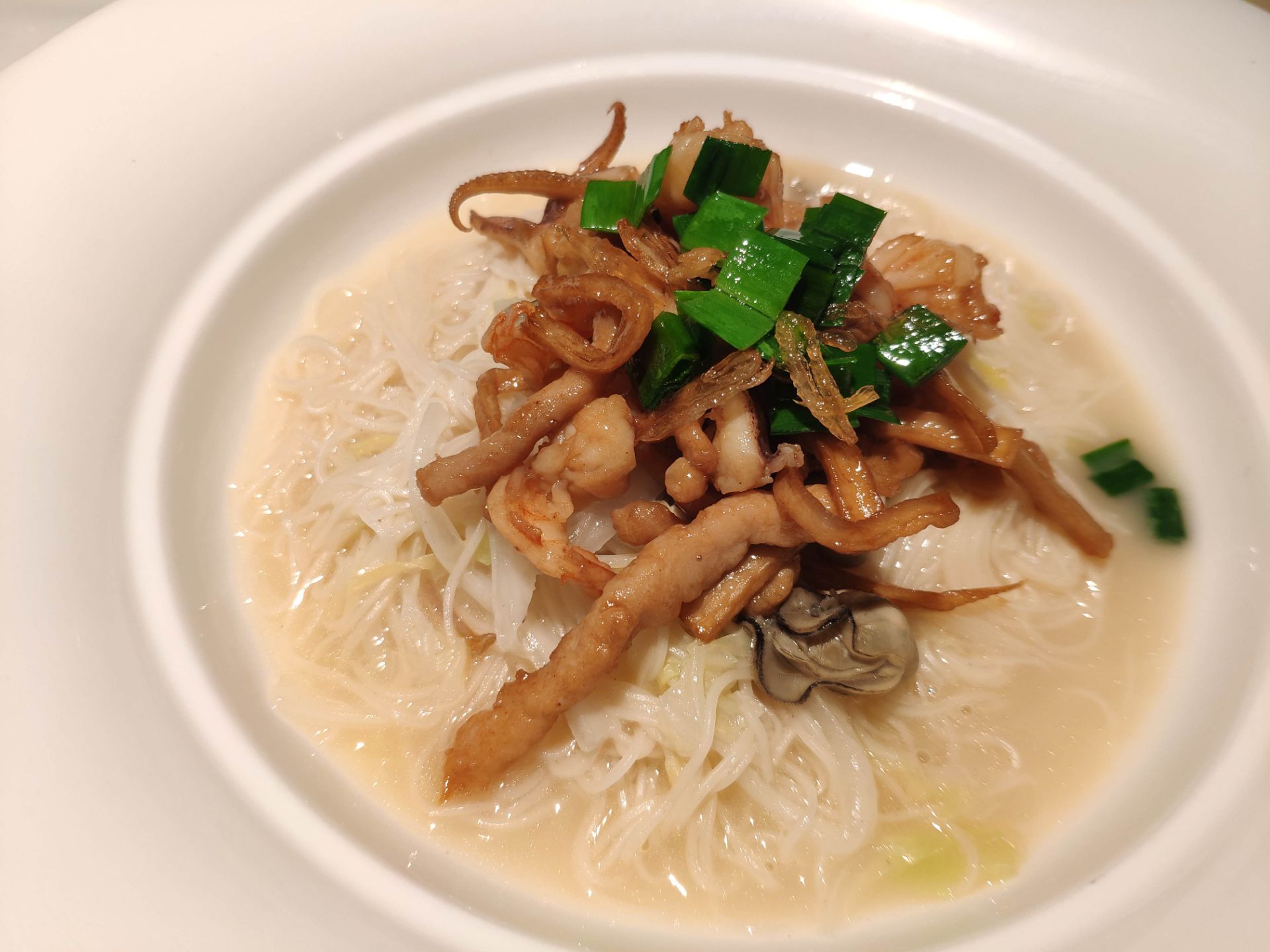 走进这jfc这里的上饍,精致的装修,可是宴请宾客的好地方。 香草羊排 羊排味道不错,精致而且可口,没有膻味,羊肉鲜嫩。 黑醋蜜汁小排 腌制的相当入味,特别好吃可口,一口吃掉一个,相当的带劲。 蒜蒸小青龙 新鲜的小龙虾简单的蒸煮就可以,非常的好吃,龙虾肉弹牙爽脆特别的好吃,鲜甜可口。连铺在下面的粉丝也充分吸收了小青龙的鲜,好吃的不得了。 薄脆芝士焗南瓜 芝士控的最爱,南瓜真的是太好吃了。 葱油手工捞面线 精心熬制的汤头配上特有的手工面线,小朋友吃的可开心了。