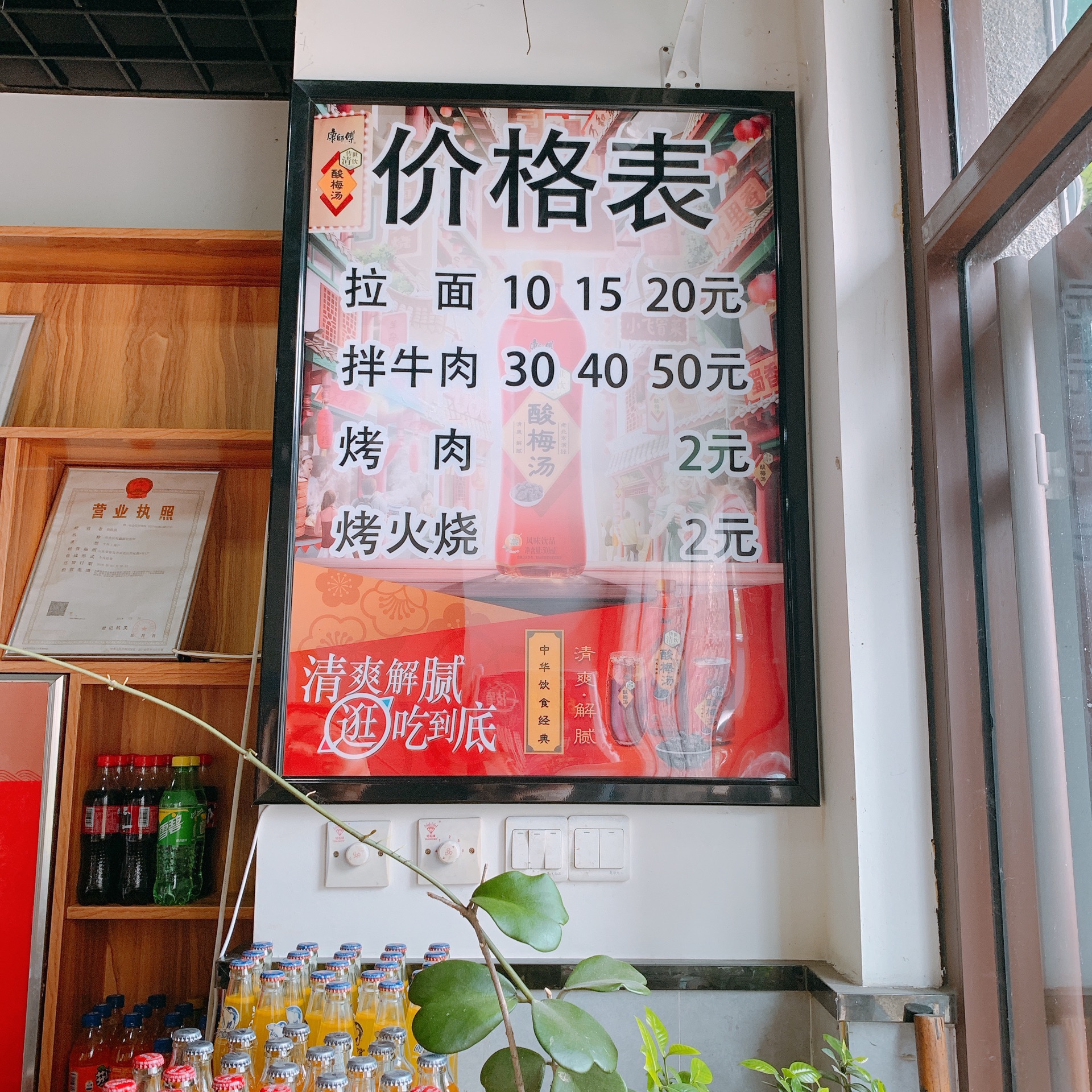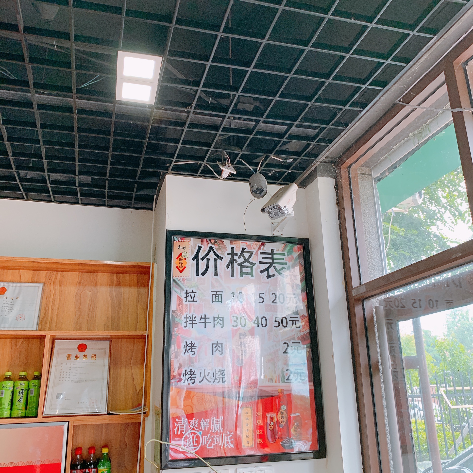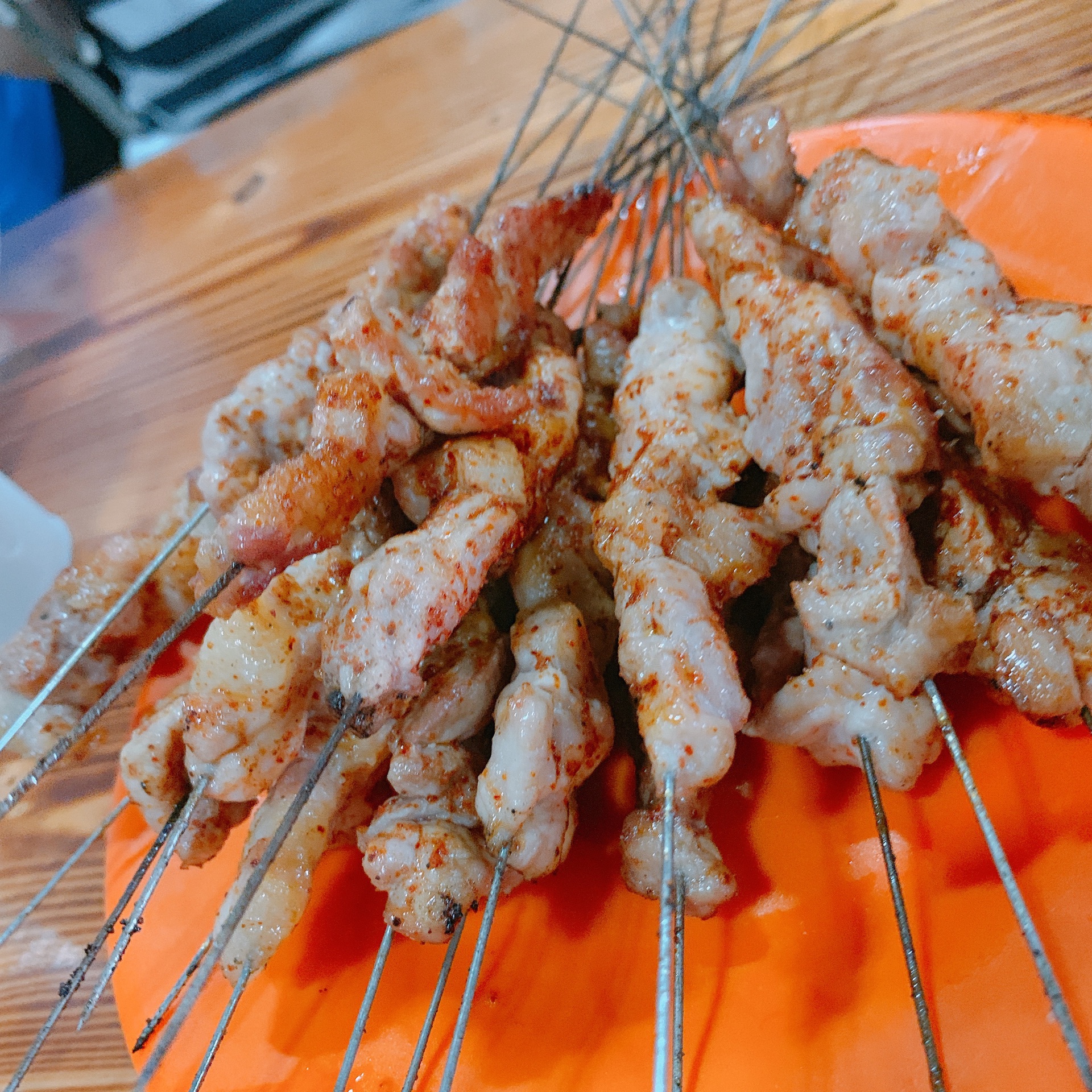 小烤肉2元一串,油水挺大,但是味道不错。就是普通街边馆的装修,看起来有点脏脏的,总体还能接受