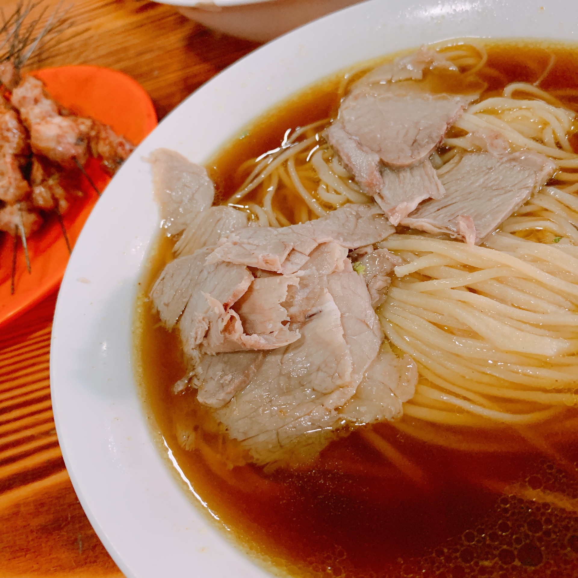 朋友带着来的老四方拉面,之前听说过鑫明明也没有尝试过,其实都在这附近。 【位置】就在四方糖球会附近,我们把车停在大糖球广场的位置走过去的,店的附近不是太好停车。 【环境】算是老牌的苍蝇馆了,据说是四方人儿时的记忆吧门头不算大,里面倒是很宽敞。就是普通街边馆的装修,看起来有点脏脏的,总体还能接受。 【口味】面就是招牌的牛肉拉面,由于没有吃过,本来是想点15元的,后来朋友说价格不一样就是肉的分量不一样,乖乖的听劝点了10元的。 超级大的一碗面,要拿着小票过去现做,可以要求粗面或者细面,不要香菜什么的也要在窗口告知。小烤肉2元一串,油水挺大,但是味道不错。 总的来说性价比很高,四方区的物价不算贵,一个人花20块钱吃的饱饱的