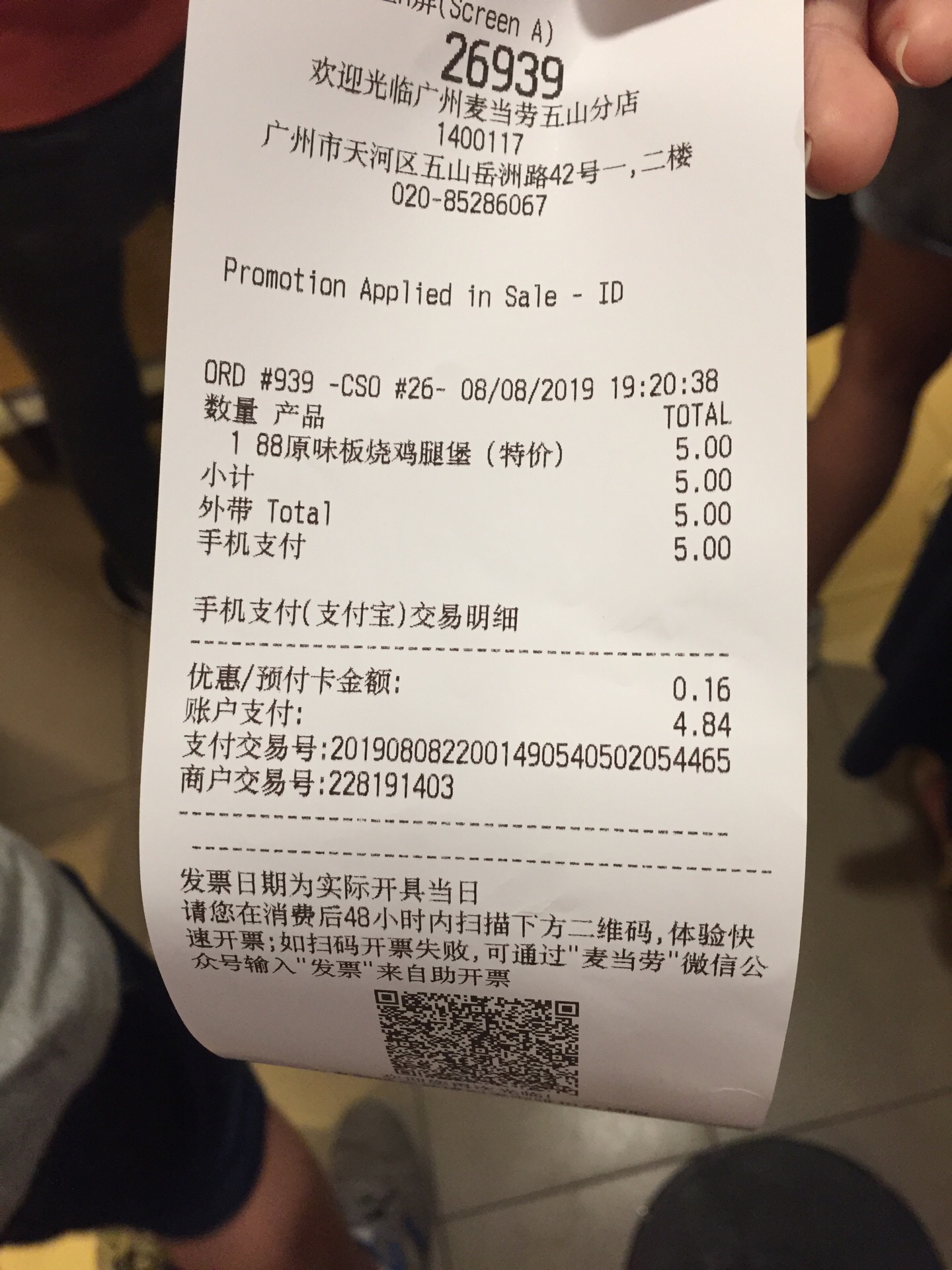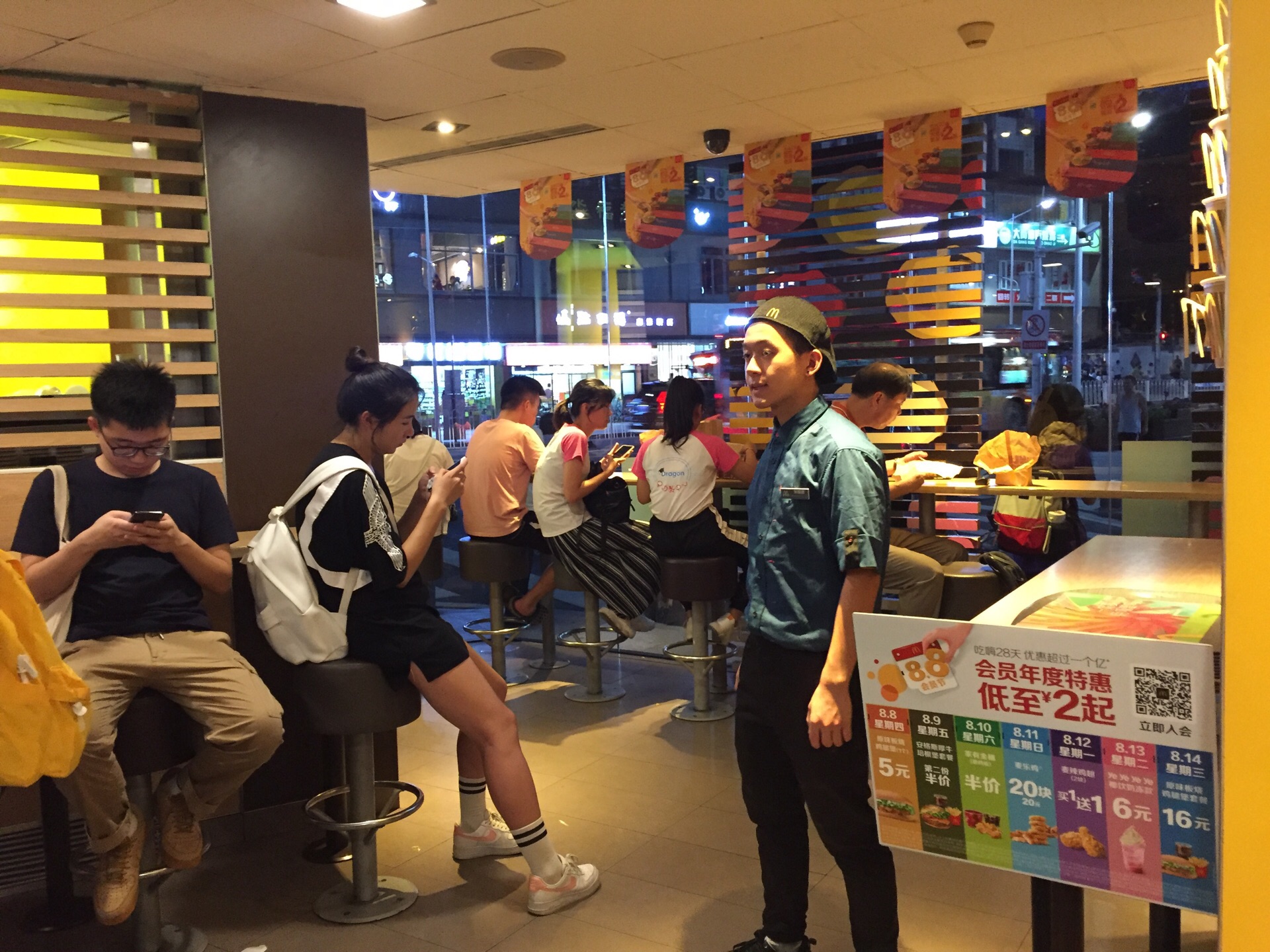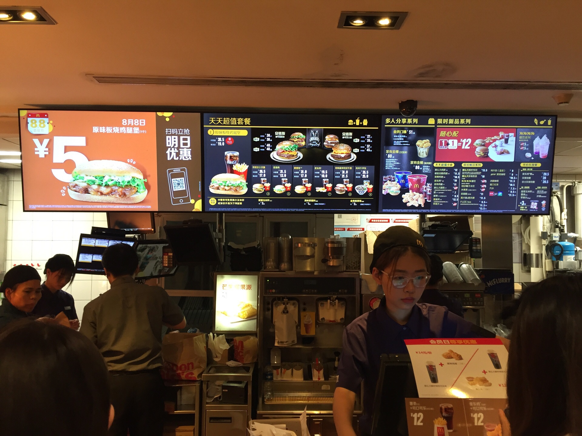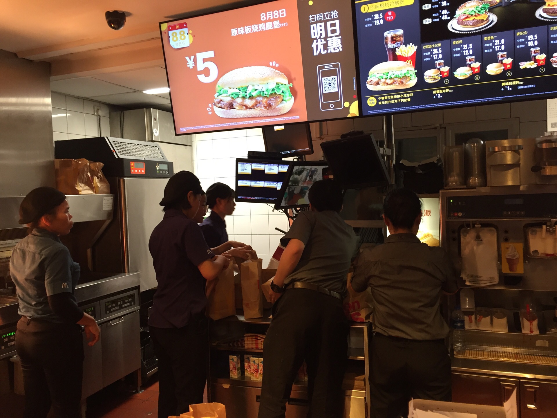 昨天的麦当劳,火爆得不行,因为5元的板烧鸡腿堡,五山店内挤得水泄不通。 因为店面不算大,所以排队也难,店家维持秩序的力度不行啊,还好提前把餐品准备了一大堆,准备为板烧鸡腿堡的客人另辟了一条路。 味道还是那个味道,但是感觉小了不少啊。错觉吗?