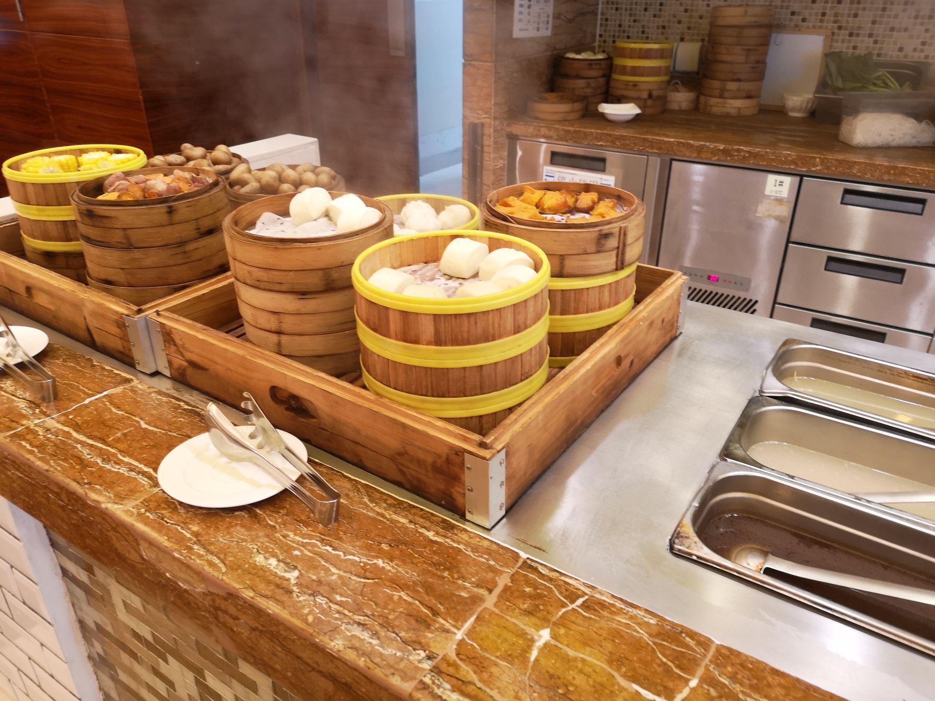 环境,非常好,顾客不多,井然有序,旁边有儿童乐园,小朋友可以免费玩耍,不会吵闹,风景很好,玄武湖,紫峰,湖景城景都有了,靠窗的位子要提前订,赶巧的话早点去还有。 服务,非常好,很亲切。 菜品,偏西式。 饮料有各种鲜榨果汁,还有无糖百事可乐,还不错。 甜品,中式点心不错。糖芋苗好吃。 热菜偏西式。牛排蛮好,也没有等,大厨煎的比较勤。 价格,就菜式小贵,但风景服务不错。赶上138的抢购价还是不错的。