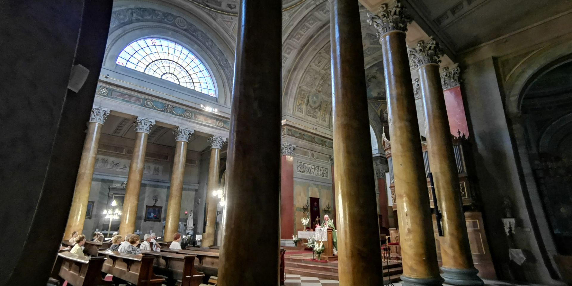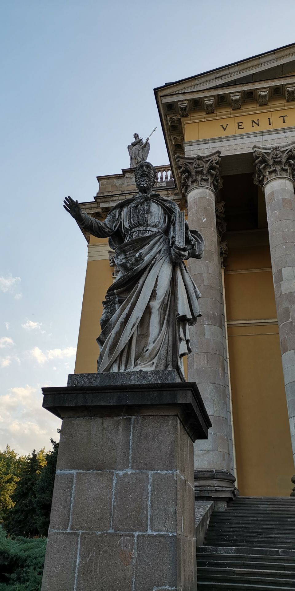 ...的建筑风格,这主要源于教堂前的科林斯柱(从希腊过渡到罗马风格的有柱头柱子)和很具希腊风情的雕塑圣若望教堂是古典式,从外观看很有些希腊神庙的建筑风格,这主要源于教堂前的科林斯柱(从希腊过渡到罗马风格的有柱头柱子)和很具希腊风情的雕塑。