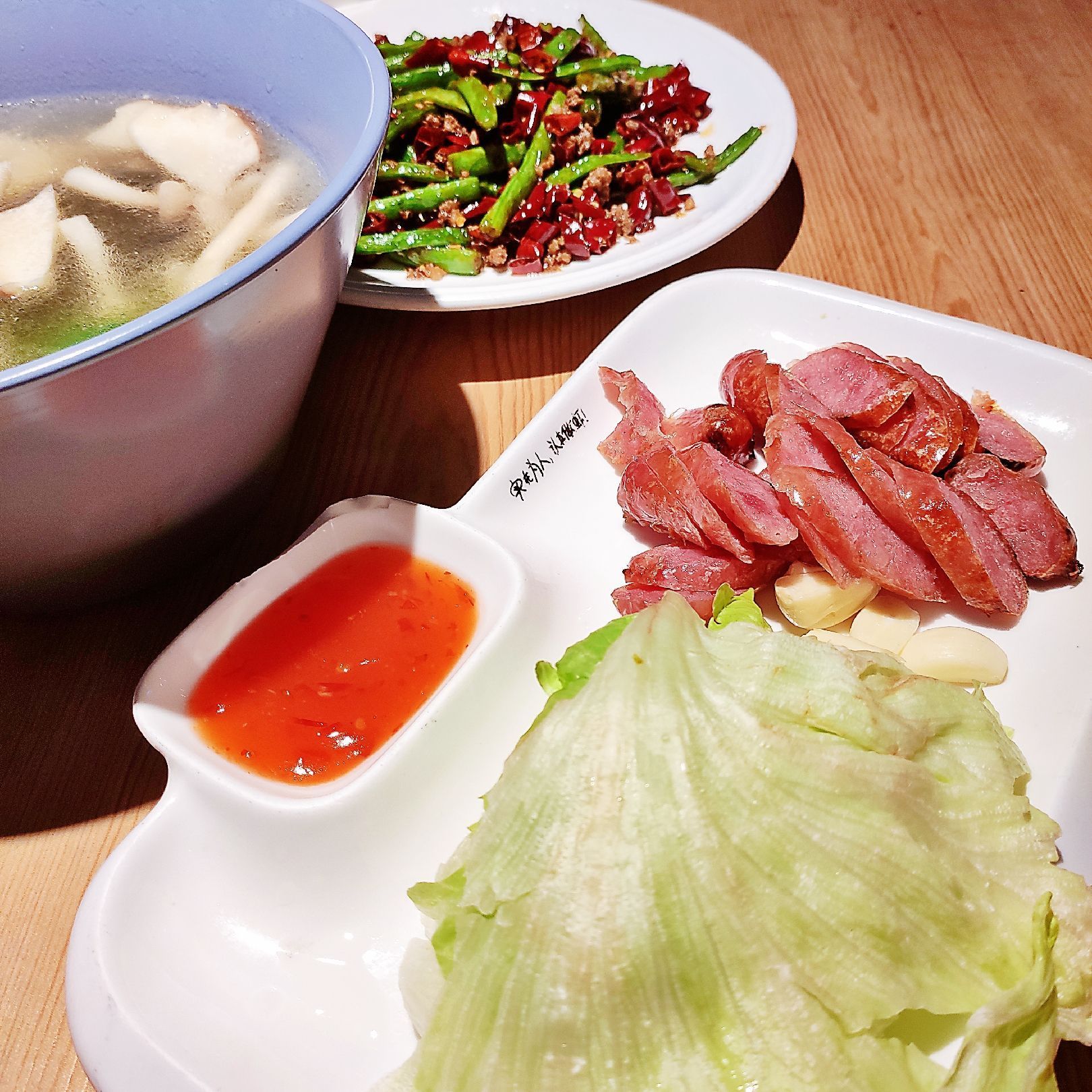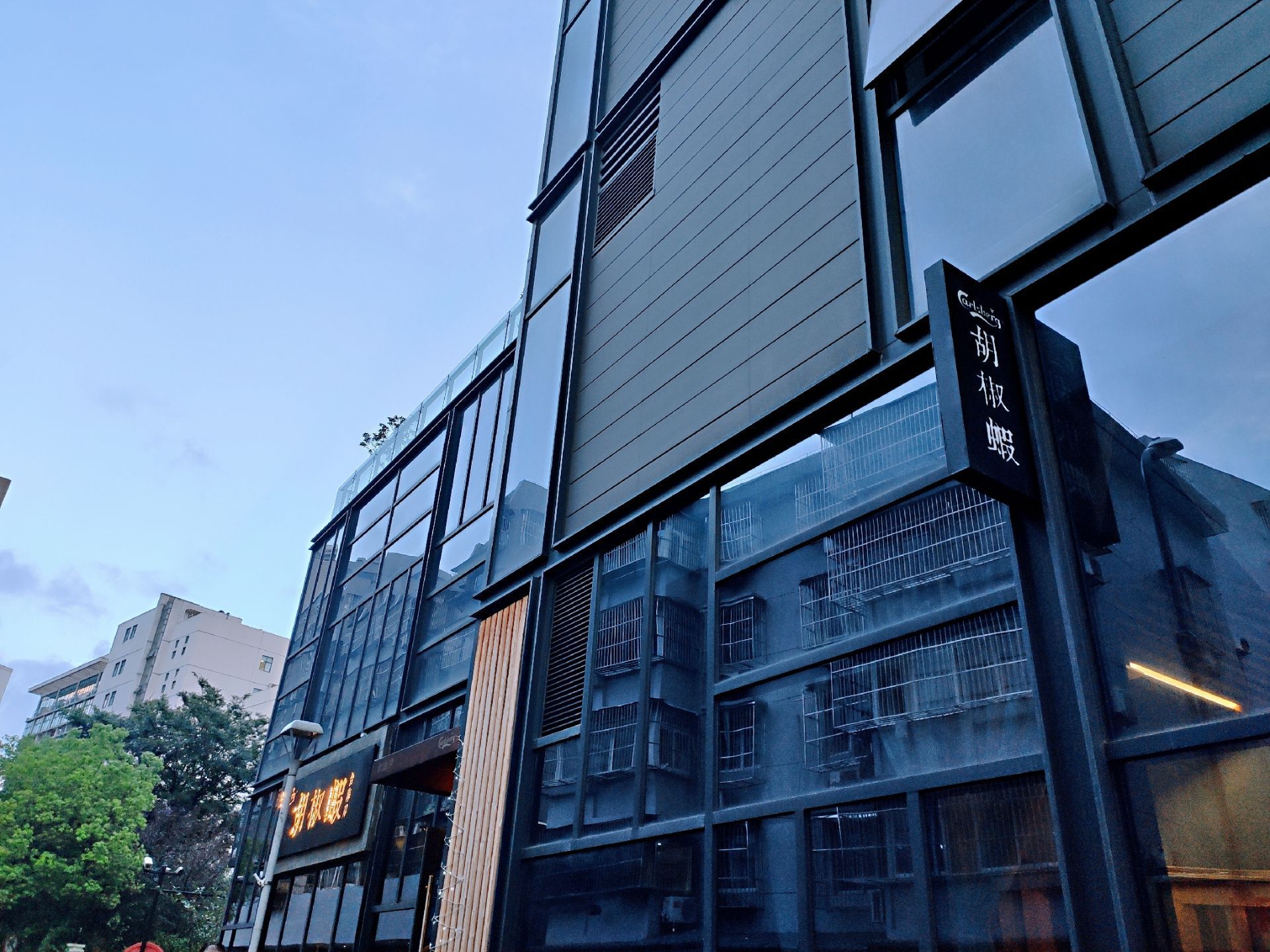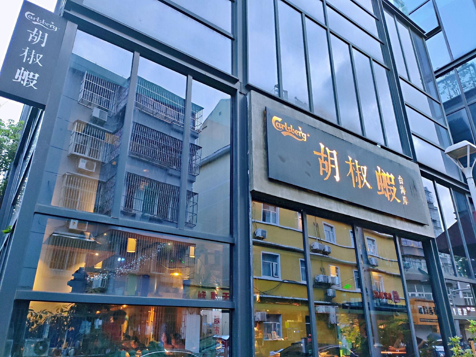 这家餐厅位于月湖新荟天地北面,临章耆巷,相邻星巴克,地理位置包括门头都略显低调,但入内,却觉很有味道,无论是软硬装,还是菜品。 店名取“胡椒虾”,想来店家对于此菜相当有自信,因此,88元一份的胡椒虾基本属于每桌必点,选用的是万氏对虾,菜品造型就很特别,少见的狗母锅边缘18只万氏对虾,虾头朝里冲下,环形摆放,色泽焦亮,胡椒被高温炯烧提香后,内含的辛辣感被充分释放催发,并完全渗透进了虾壳、虾肉内,赋予了虾肉奇特的、厚实的、咸辣的口感。 其他菜品价格多很具竞争力,如我们点的自助豆腐、台湾香肠、三杯中翅、特色熏鱼和野山菌汤都标价38元,这些菜品都很有台湾特色,我都很喜欢,相比而言,更中意劲道有咬头的台湾香肠哟!