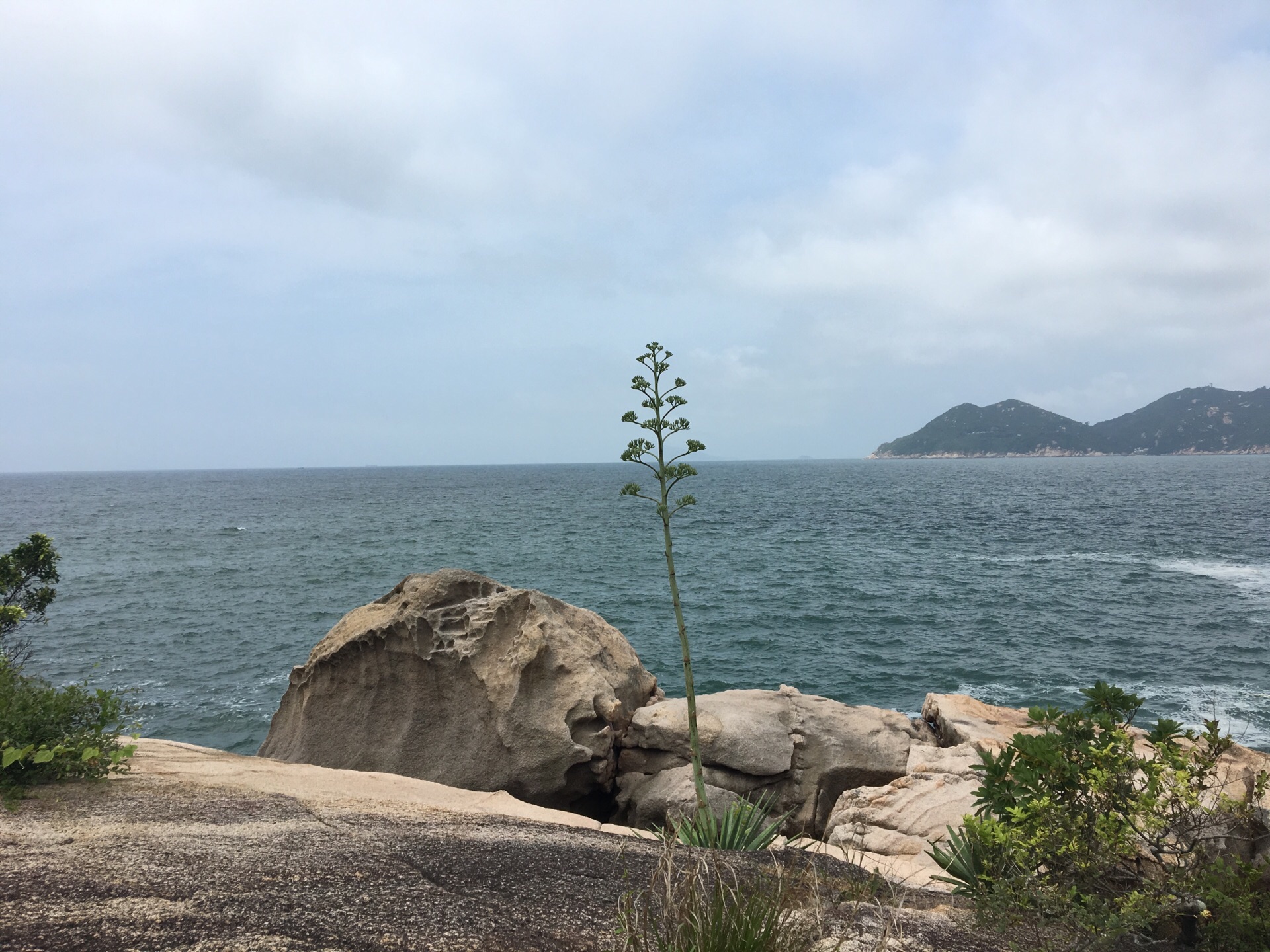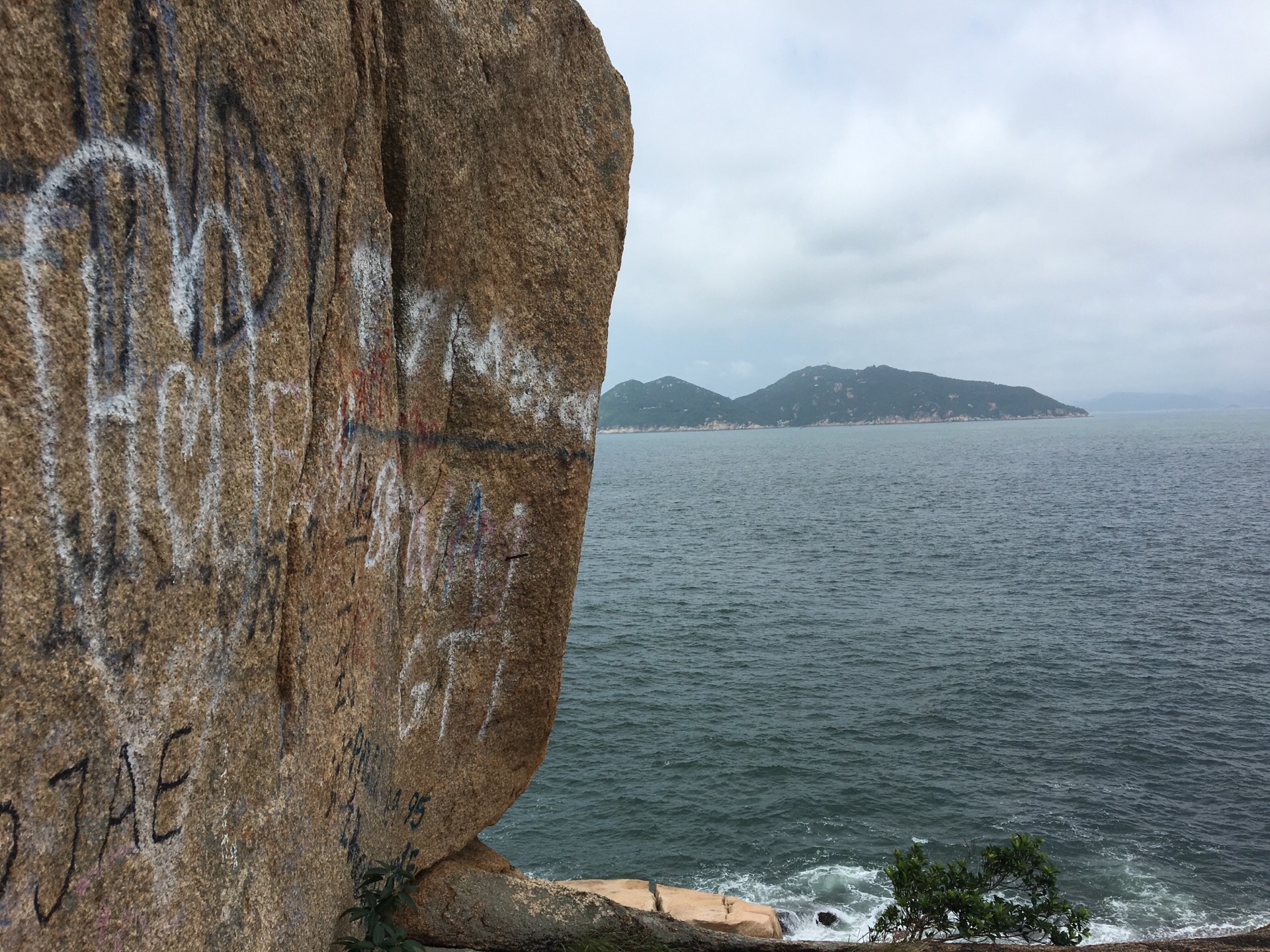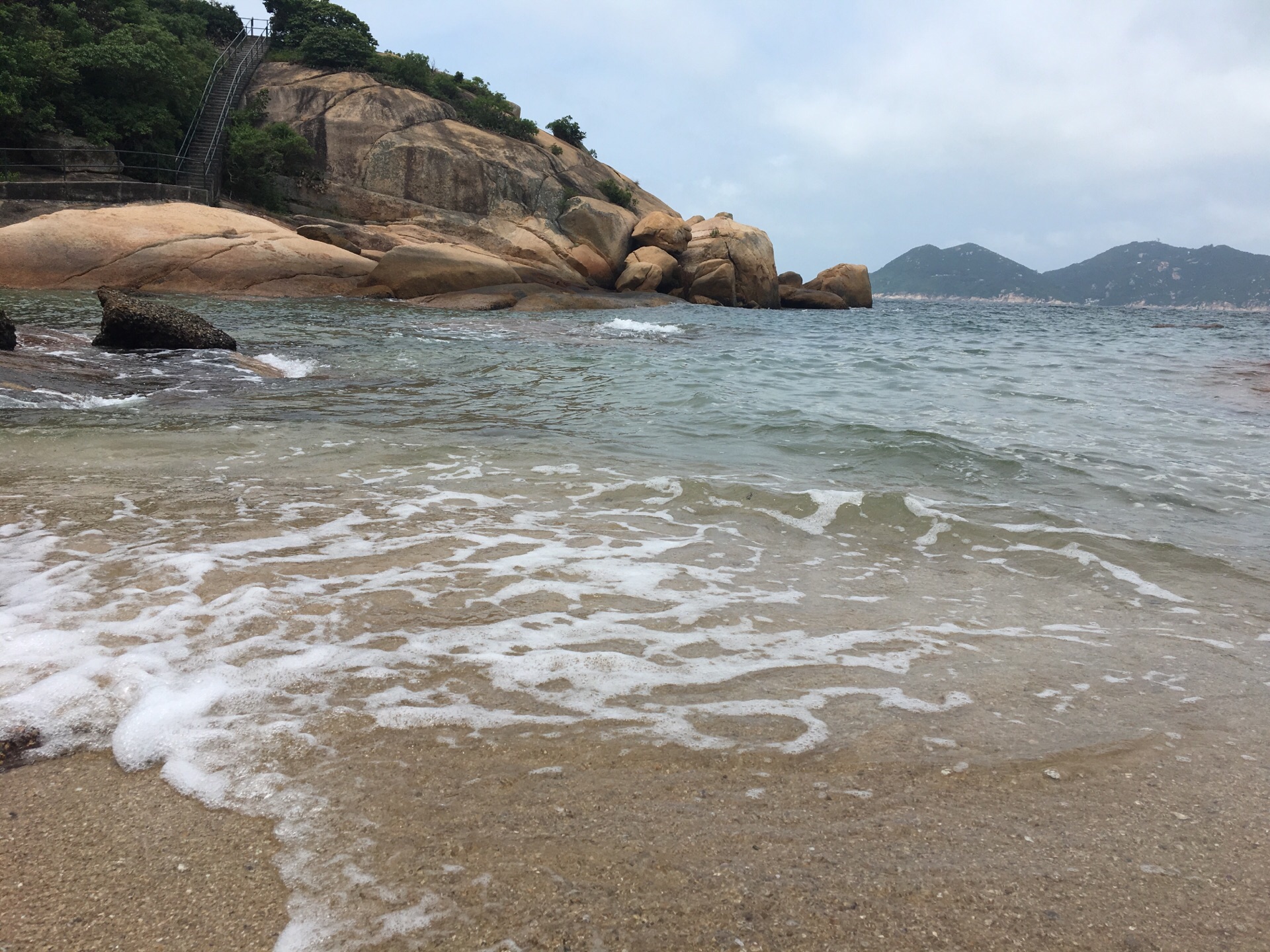 从长洲岛码头出来,沿着右手边的海岸线。走上一个小时可以来到五行石,途中会经过张保仔洞,可以顺道去看一下。五行石是一块非常大的石头,横卧在海岸边。下面的石头也非常的大块,而且比较平坦,据说是长洲居民晒鱼干的地方。不过我们去的那一天天气雾蒙蒙的,湿度大,也就没有看到壮观的晒鱼场景。