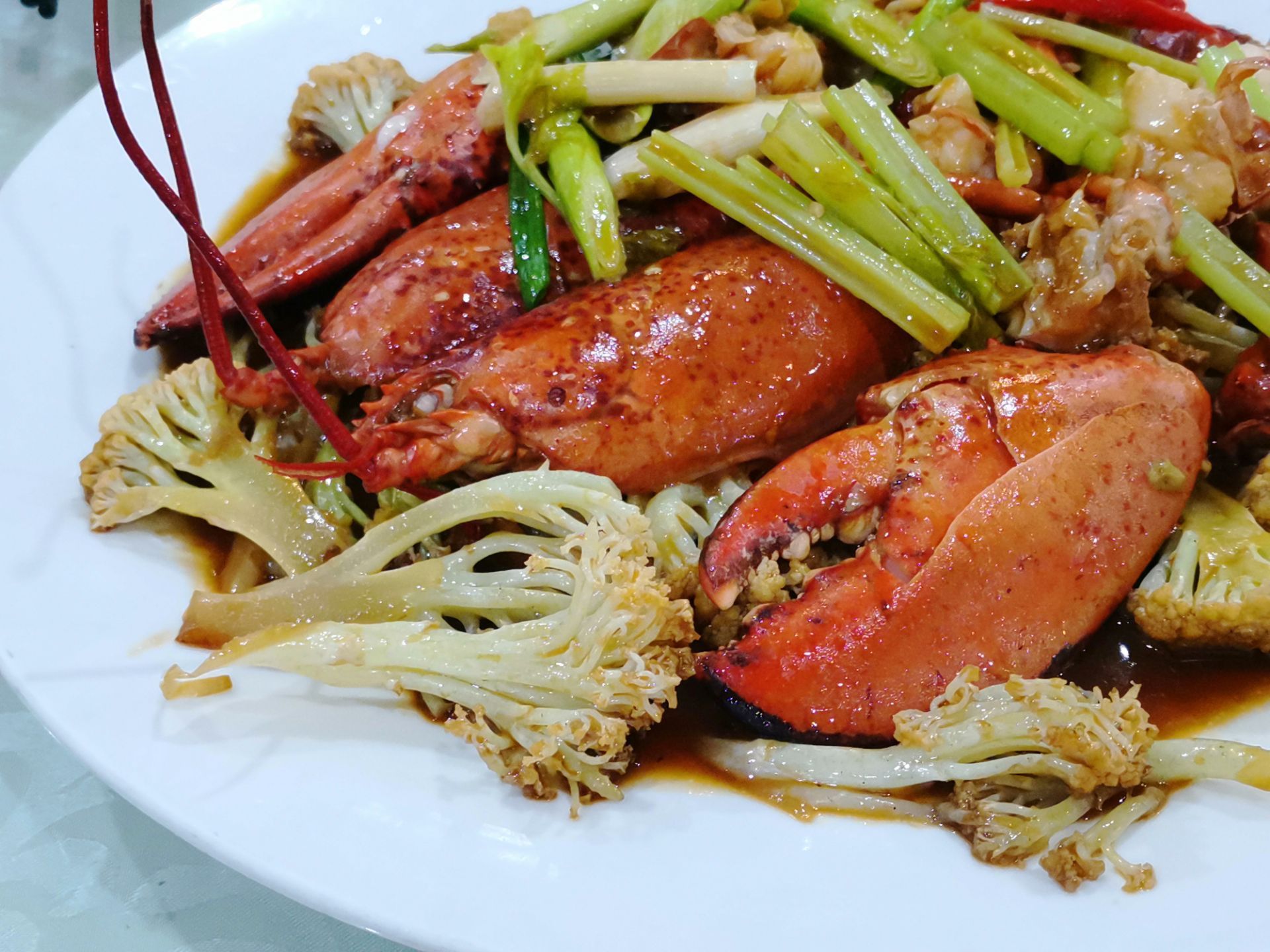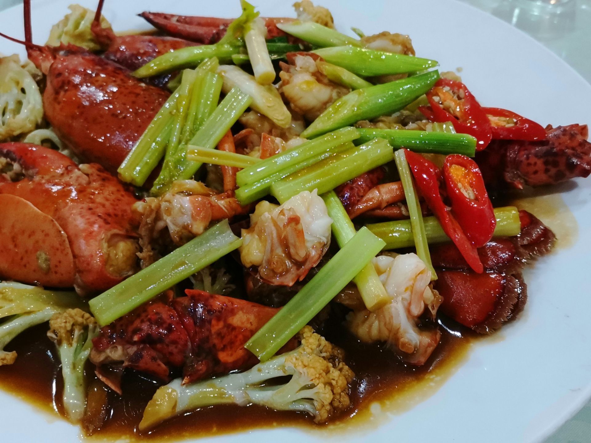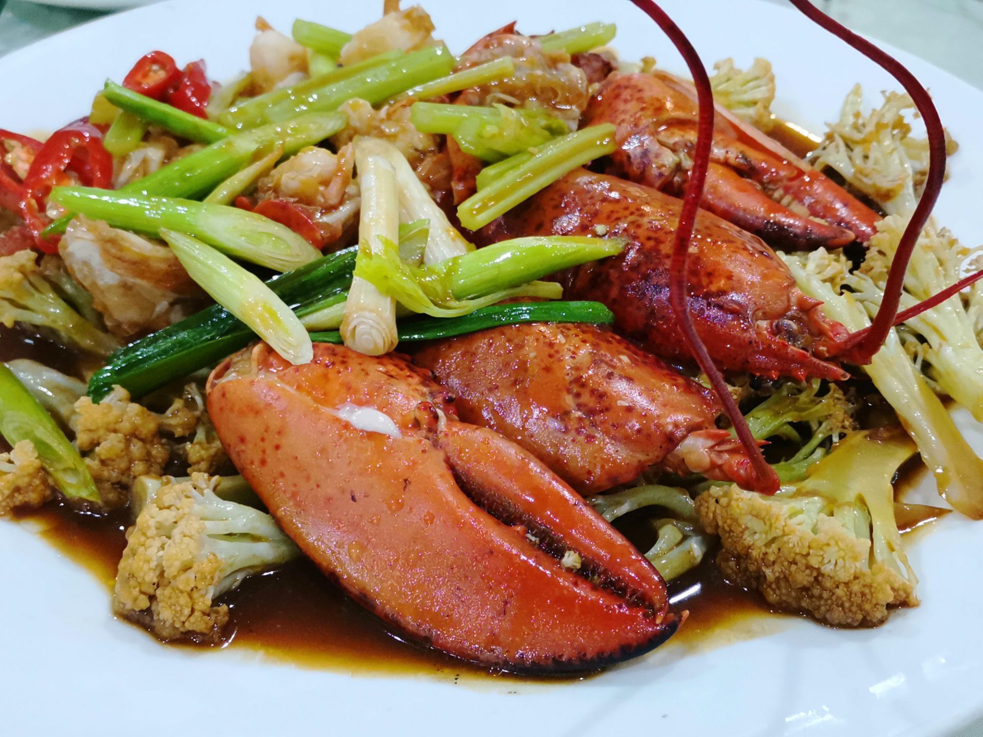 好食来大排档(美食航标店),平价海鲜大排档,位于斗西路老城区,海鲜新鲜,味道出众,回头客多。 主菜龙虾焖花菜,现捞现杀现煮现焖,多年掌厨经验,才能每一道工序都得心应手。龙虾肉质鲜嫩鲜美,鲜甜可口,再口中感觉十分鲜活,这就是海鲜的魅力!一口豆腐煲,美味的家常菜,豆腐很嫩,分量也多,便宜又大碗,很下饭,能吃两大碗米饭。卤面好大碗,加了鸡蛋等配茶,浓稠的样子很正宗!味道也很棒!