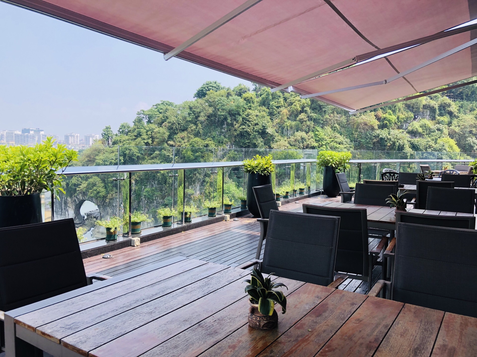 ...,出去似乎是一件很困难的事,三十多度的高温,只能等着稍微晚一点再去,在这里看象山是个不错的选择天气太热了,出去似乎是一件很困难的事,三十多度的高温,只能等着稍微晚一点再去,在这里看象山是个不错的选择。点了一份下午茶,坐在这里静静看着象山和漓江,也是一件不错的事情~