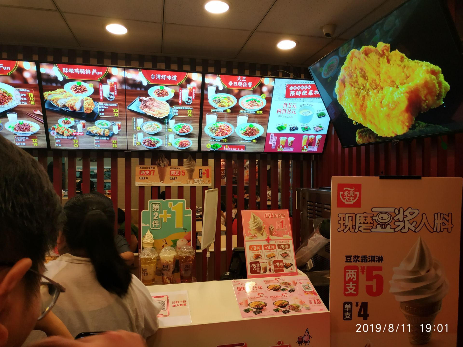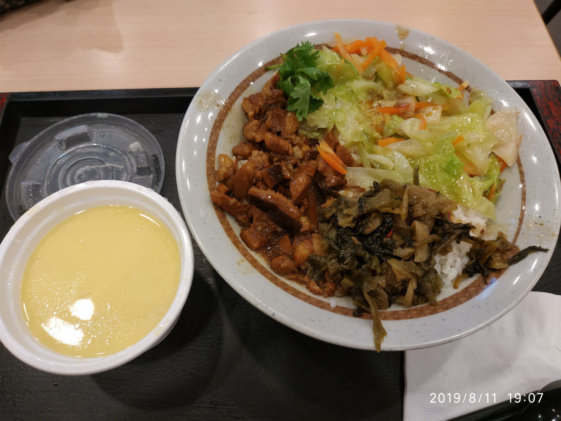 好久没来永和大王吃饭了,这家店位于通州区运河大街易初莲花底商,有年头了,易初莲花都改名了。 团购的单人餐,一份卤肉饭,一份蒸蛋,9.9,这价格性价比还是非常高了!味道也还行,买了个冰淇淋1元,吃了顿饭花了10.9,不给好评都不行!呵呵,值得推荐!