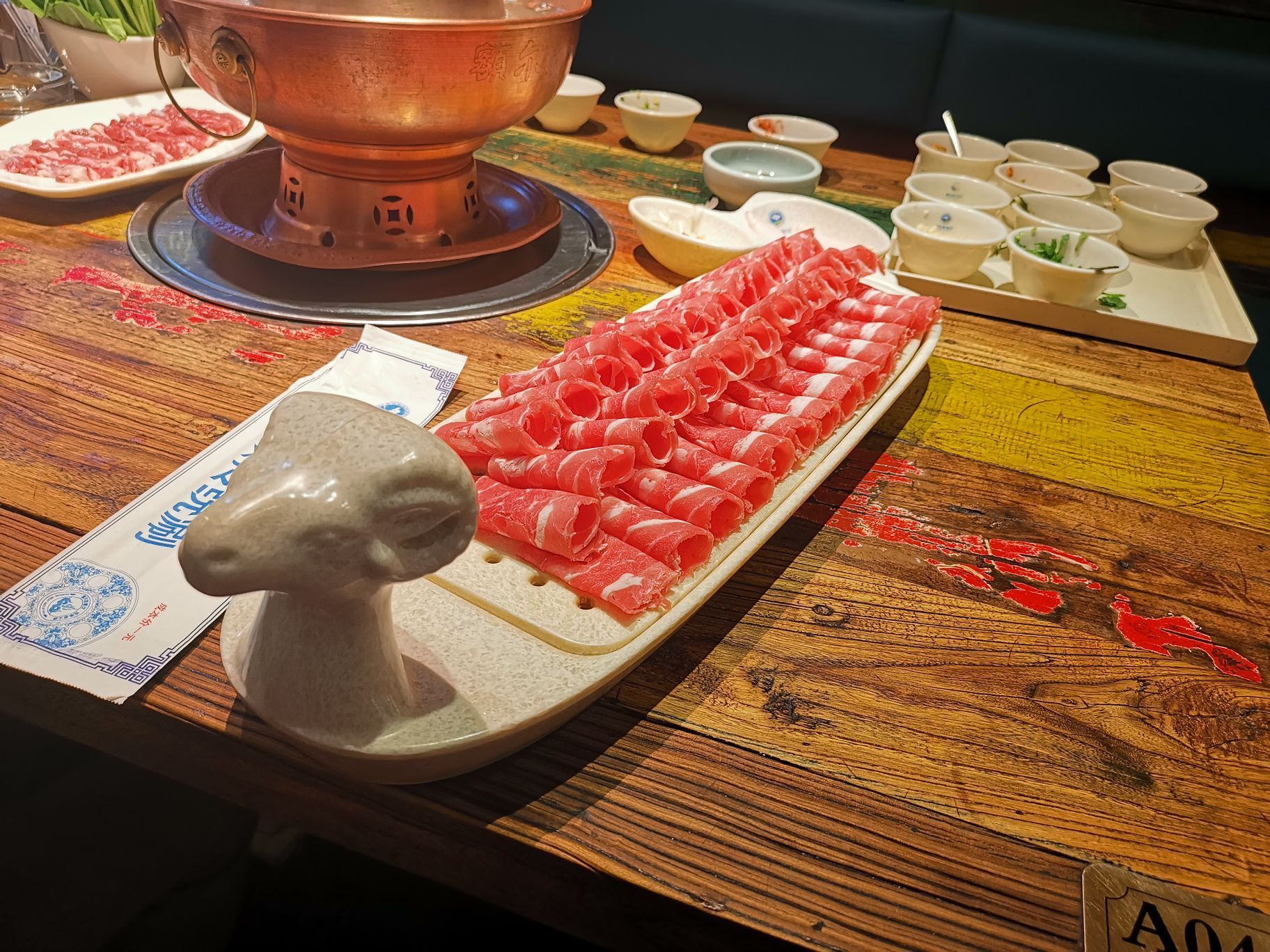 跟随着一个美食主播的步伐来到这里的,果然名不虚传,从进门到上锅再到上调料等环节和别的火锅店都有不同的感觉,料很用心,每桌一份12种碗装调料,再说羊肉,推荐上脑肉,盘子很有意思,是一只趴着的小羊的形状,两个人点两种肉足够啦,菜拼可以选择两个菜的小拼盘,非常恰到好处!