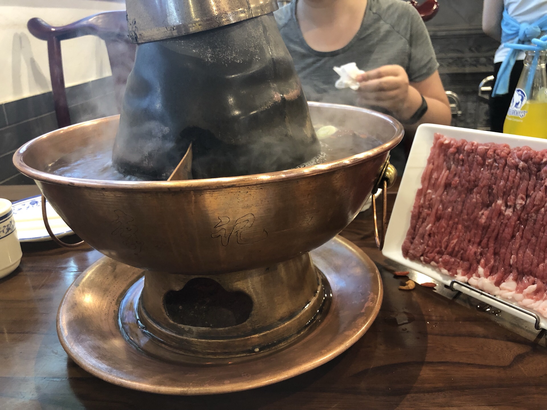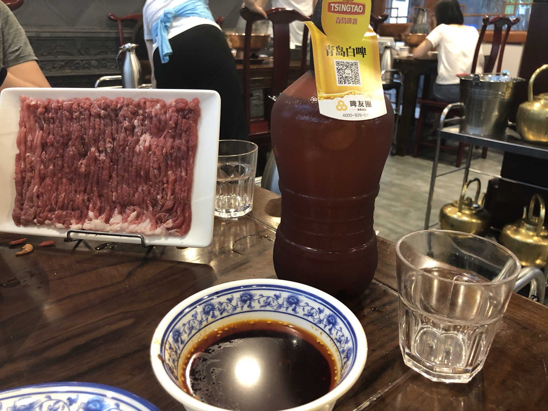 这是我觉得在北京吃过的最好吃最正宗的涮羊肉了,一开始是想去旁边的南门,只可惜要排队两个多小时,就去了对面的这家鸦儿李记,尤其是手切鲜羊肉,看着就很有食欲,两个人点了两盘肉就足够了。很棒!很推荐,就在后海烟袋斜街。