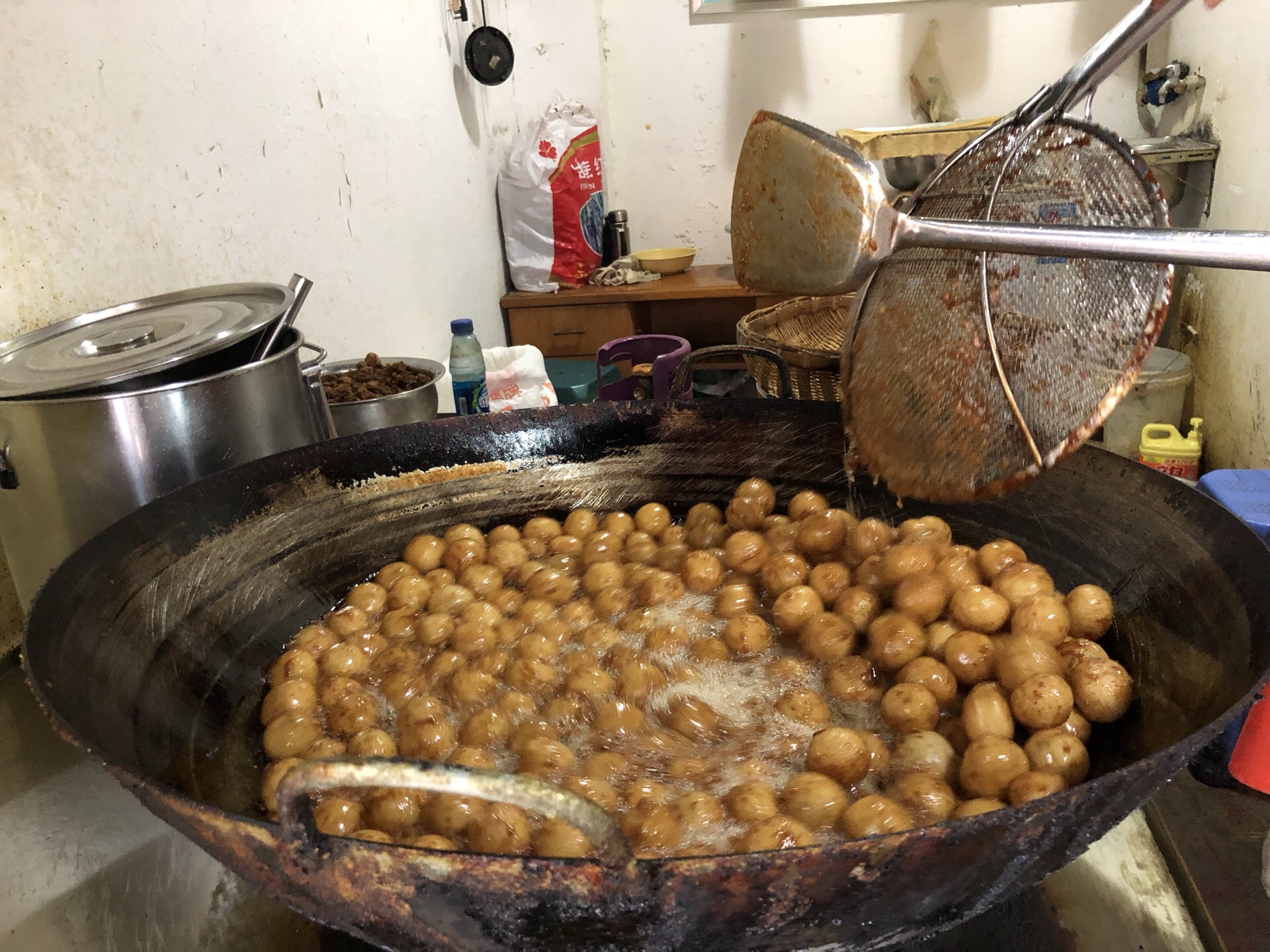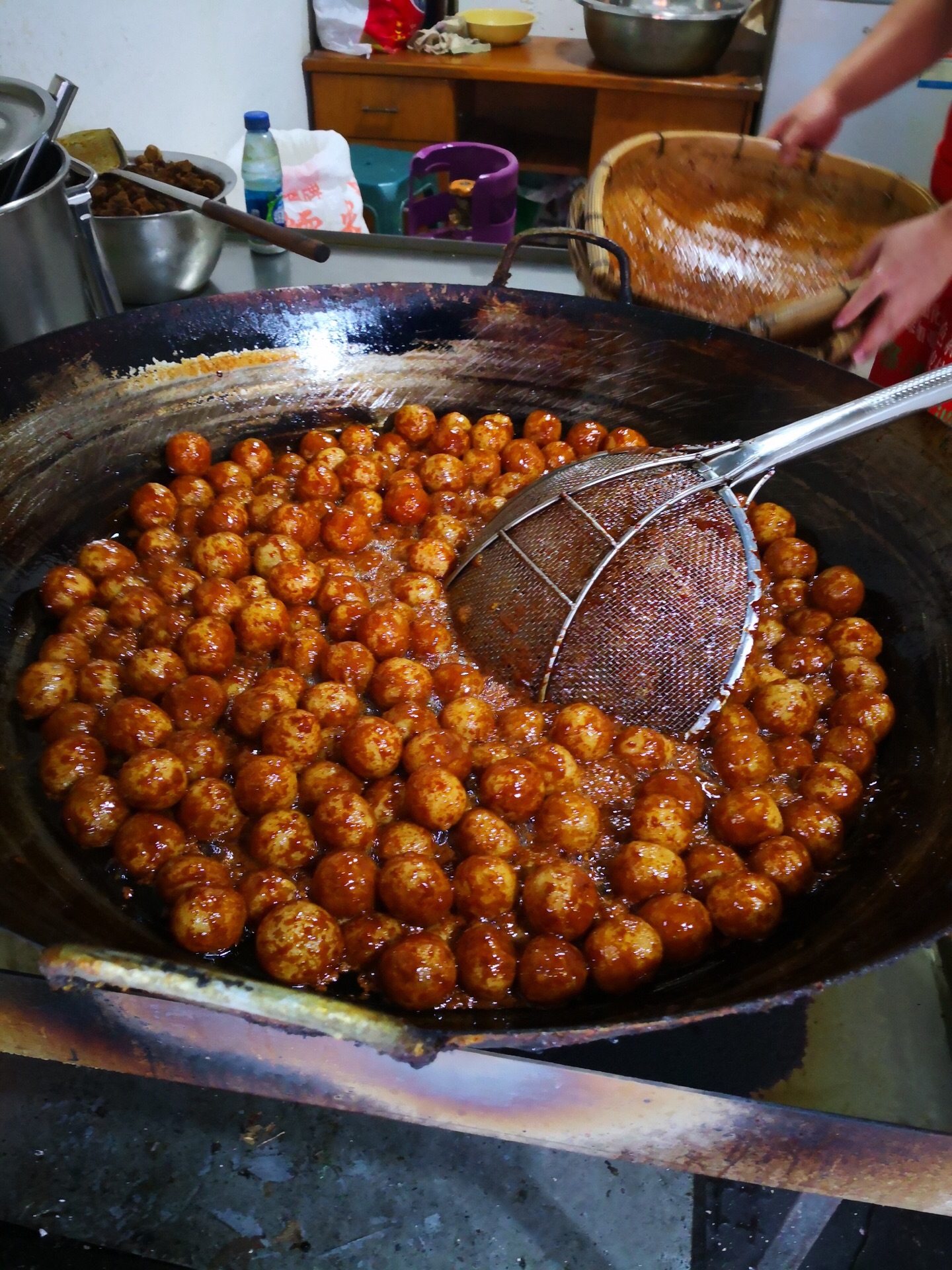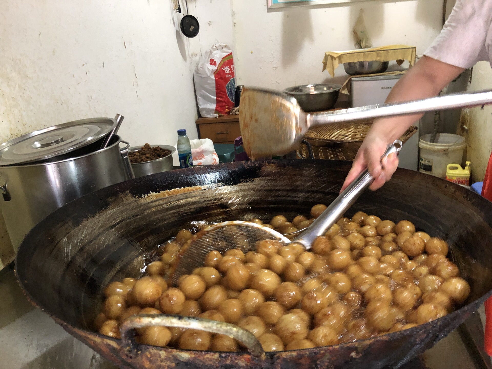吃过的最好吃的糖油果子,没有之一,我们去的时候师傅正在炸,炸够了火候再放红糖继续炸,出锅后,有点拔丝