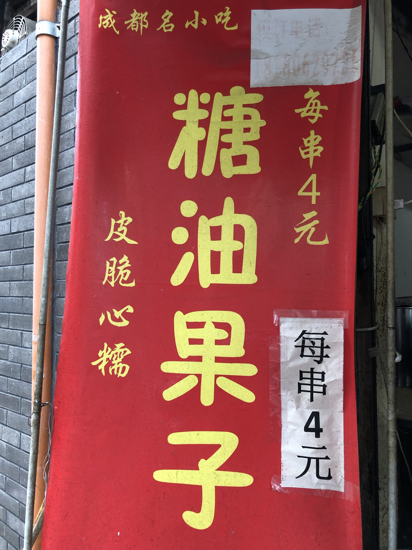 吃过的最好吃的糖油果子,没有之一,我们去的时候师傅正在炸,炸够了火候再放红糖继续炸,出锅后,有点拔丝,稍微凉一些就可以吃了,很甜很脆啊。一口气可以吃5串,就在宽窄巷子和奎星楼街附近,导航就可以找到啦。