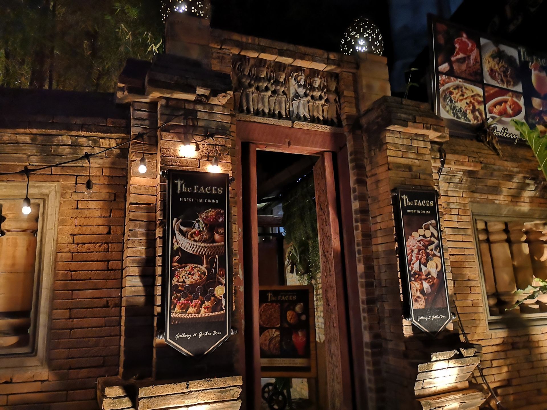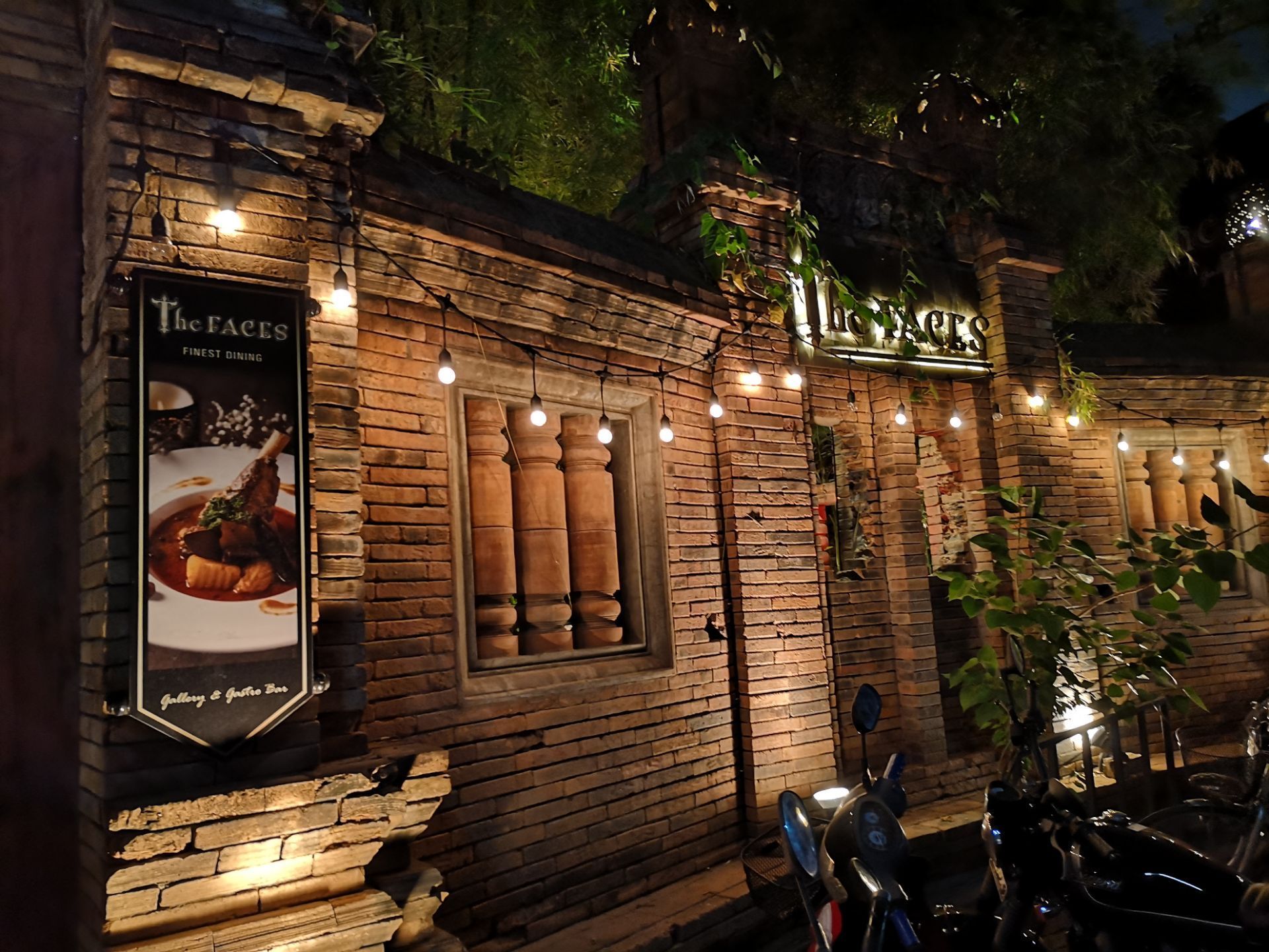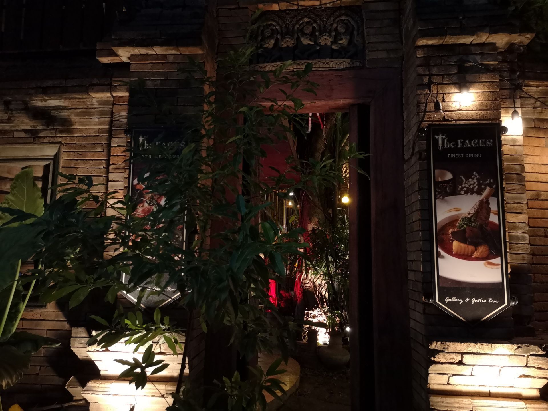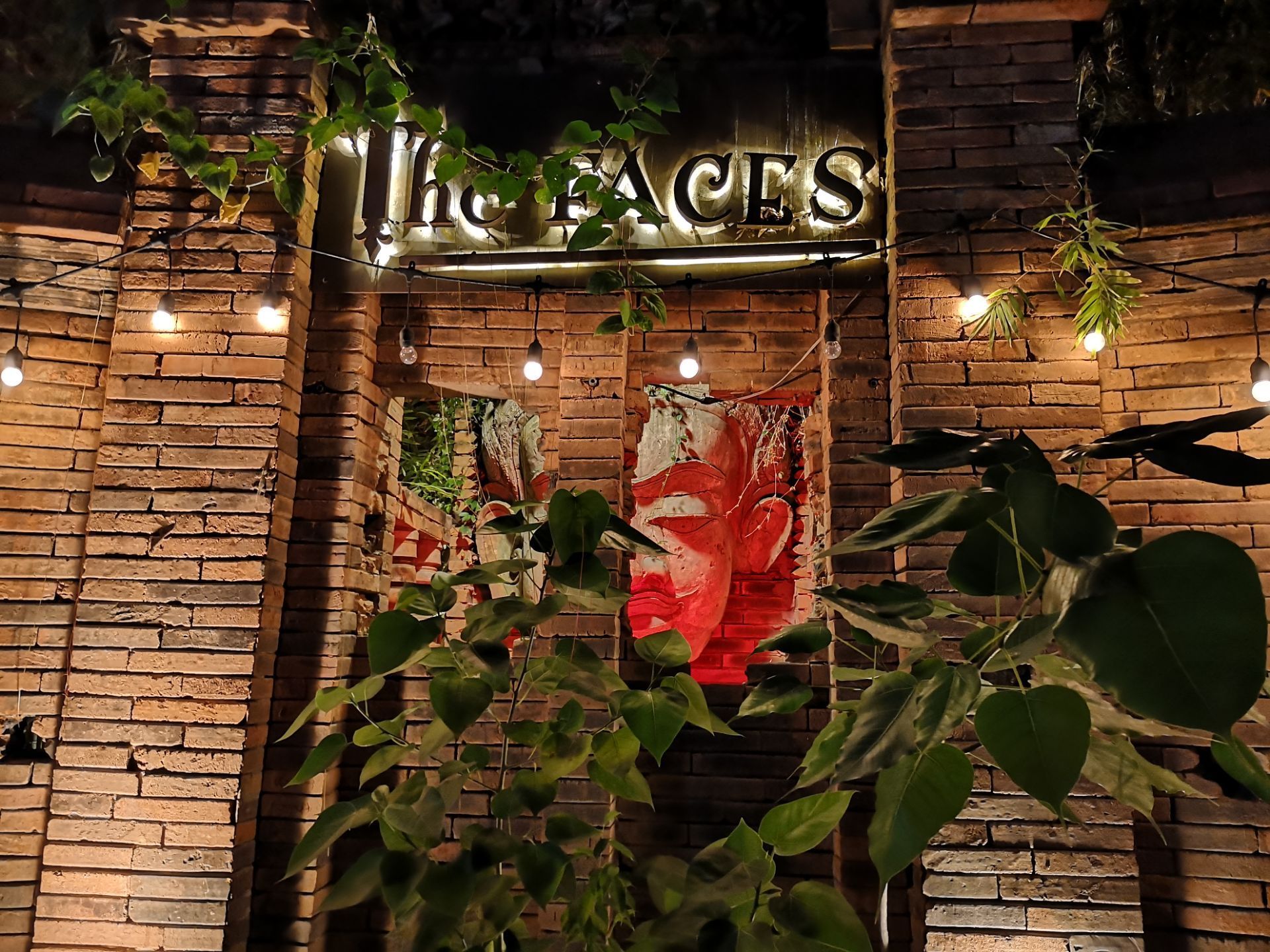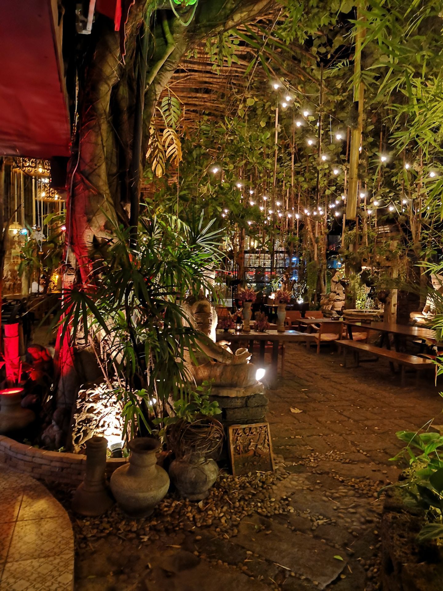 这个地方真的是大隐隐于市,里面只有一片天地跟空间好像就在一个大的庭院里面吃饭一样,也是一个晚上比较热闹的吧,里面就热带雨林的风格,旁边就是热热闹闹的城门,在这里吃东西,虽然比较贵,但是真的是很有意思的地方,朋友相当喜欢这里面的小吊灯,显得非常的浪漫。